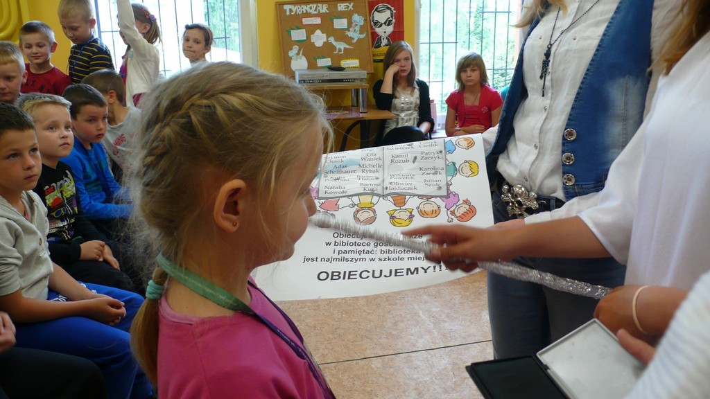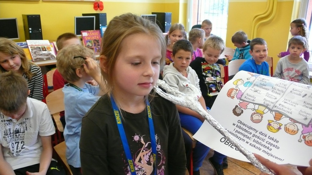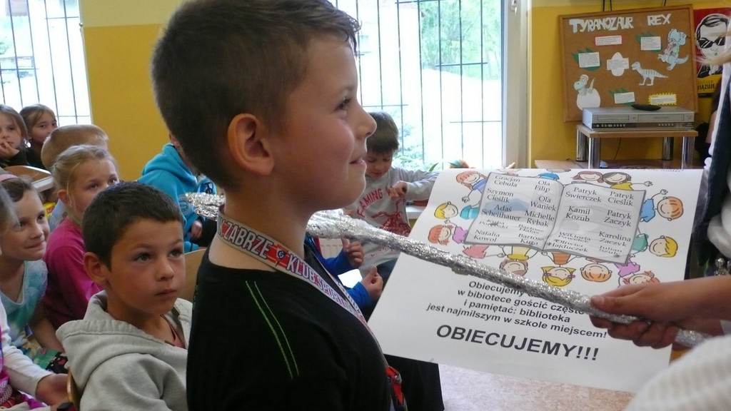 12 maja 2014 r. w bibliotece szkolnej w Kobyli odbyło się uroczyste pasowanie na czytelnika. Uczniowie klasy I uczestniczyli w lekcji, na której zobaczyli przedstawienie „Piraci w Książkolandii” w wykonaniu uczennic z klasy VI: Wiktorii Gawron, Wiktorii Moskwa, Karoliny Kabot, Kamili Doleżych, Angeliki Kaszuby, Martyny Kostrzewy i Klaudii Kalisz. Dziewczyny zaprosiły uczniów w świat książki. Kapitan Wiktoria i majtek Karolina zabrały dzieci do Książkolandii. Panna wodna, Kamila zadawała zagadki i w ten sposób dowiedzieliśmy się, czy dzieci czytają. Uczniowie doskonale znali odpowiedzi na zagadki. Angelika i Martyna mówiły o szanowaniu książek, a Klaudia w skrócie przeczytała, jakie zasady panują w bibliotece. Wiktoria Neptun, pasowała każdego pierwszaka na czytelnika biblioteki szkolnej. Była również uroczysta obietnica, w której uczniowie zobowiązali się do częstego odwiedzania biblioteki i czytania. Postawili paluszkową pieczątkę obok swojego imienia i nazwiska na specjalnie przygotowanym plakacie z obietnicami, który będzie wisiał na gazetce w klasie, przypominając o czytaniu. Po pasowaniu, uczniowie wręczyli swojej wychowawczyni Bożenie Lenort podziękowanie, na którym własnoręcznie się podpisali. Dziękowali za wprowadzenie w świat czytania, cudownych bajek i opowiadań. Nie obyło się bez czytania, czytania przepięknej bajki Wandy Chotomskiej: „Przygody jeża spod miasta Zgierza”. Opowiadanie było o niezwykłej podróży jeżyka w poszukiwaniu rodziny. Na pamiątkę każdy uczeń otrzymał zakładkę z napisem „Kocham czytać”. Na koniec uczniowie wypożyczyli sobie po jednej książeczce do przeczytania w domu. Udzielili oni również wywiadu naszej szkolnej redaktorce „Gazetki z klasą” Julii Dąbrowskiej, a obecna na pasowaniu pani dyrektor Joanna Kolarczyk bardzo gorąco zachęciła uczniów do czytania. Sama bowiem bardzo dużo czyta i chciałaby, by nasi uczniowie wyrośli na mądrych, wspaniałych ludzi, którzy często sięgają po książki.