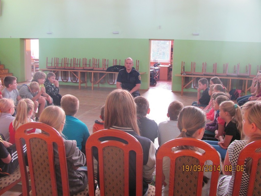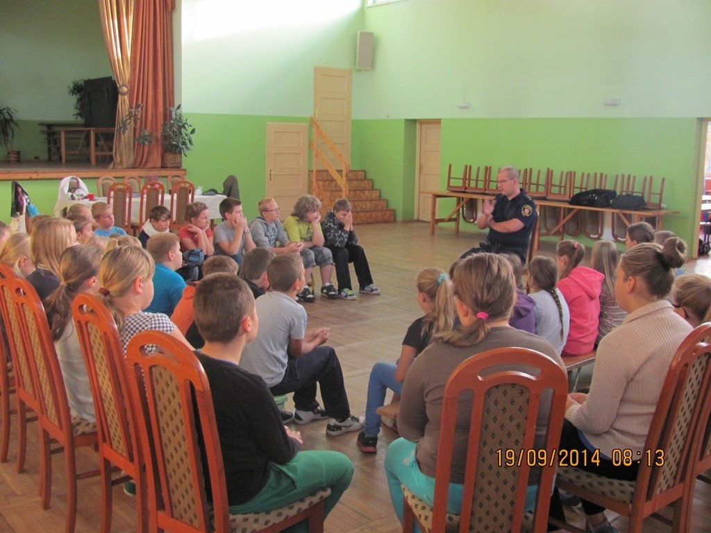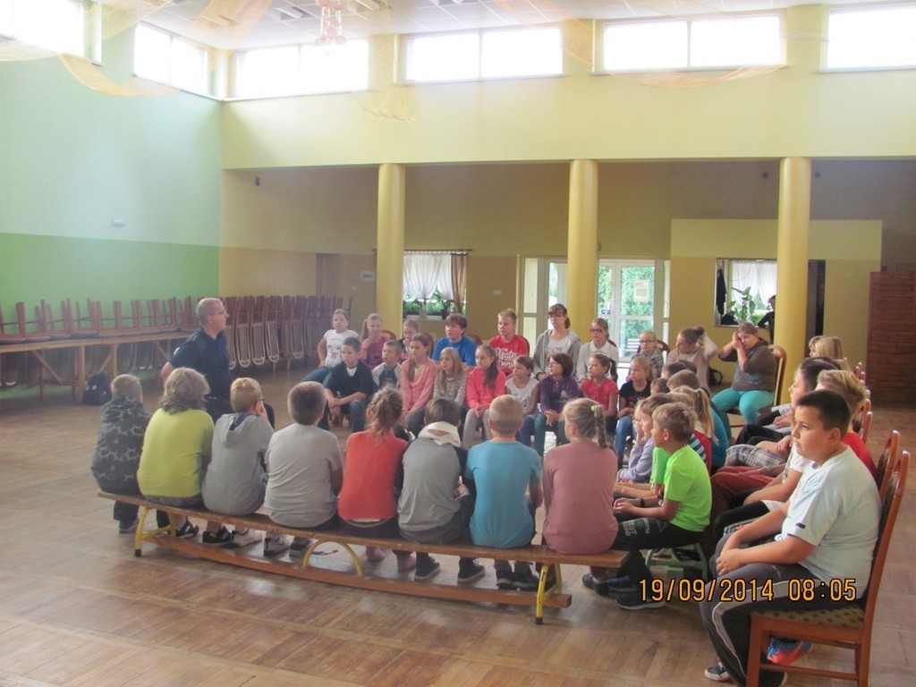 Uczniom przypomniano zasady zachowania się w kontaktach z dzikimi zwierzętami, zasadach bezpiecznego poruszania się w drodze do i ze szkoły. Strażacy poinformowali uczniów o obowiązku posiadania elementów odblaskowych widocznych dla innych uczestników ruchu. Poruszono również temat zachowania się dziecka w sytuacjach, gdy zostaje samo w domu, a dzwoni telefon lub do drzwi puka obca osoba. Strażacy opowiedzieli również o konsekwencjach popełnienia przez nieletniego wykroczenia m.in. bójki, palenie papierosów, picie alkoholu.