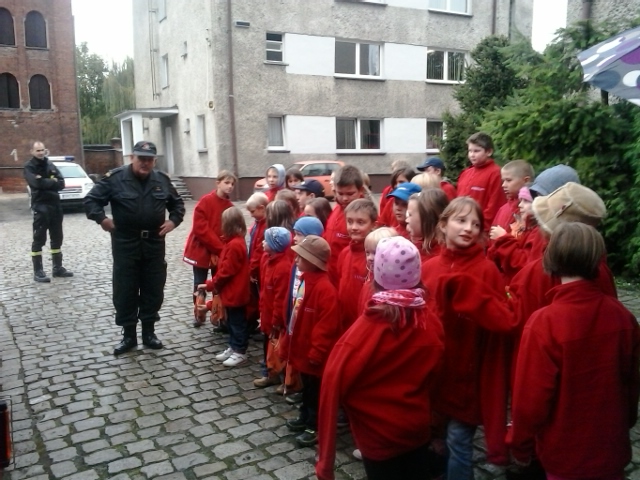 26 września 2014 r. odbyło się pierwsze spotkanie, w którym wzięło udział 98 uczestników (uczniów i nauczycieli) szkół partnerskich. Najpierw pojechaliśmy do Centralnego Muzeum Pożarnictwa w Mysłowicach, gdzie poznaliśmy historię ochotniczych i zawodowych straży pożarnych, zobaczyliśmy eksponaty straży pożarnych zebrane z całego świata. Omówiliśmy też numer 112, do czego służy i kiedy należy go stosować; zobaczyliśmy filmy edukacyjne nt. ciężkiej i niebezpiecznej pracy strażaka, pożaru i niesienia pomocy innym. Kolejnym punktem spotkania była wizyta w Państwowej Straży Pożarnej w Raciborzu. Tu pod okiem zawodowych strażaków, zobaczyliśmy jakiego sprzętu używa się obecnie, jak wygląda nowoczesny ubiór oraz jak funkcjonuje system powiadamiania o zagrożeniu. Mieliśmy okazję nie tylko teoretycznie, ale i praktycznie spróbować swoich sił przy gaszeniu pożaru. Późnym popołudniem, po długim i pełnym wrażeń dniu, wróciliśmy do domu. Z niecierpliwością czekamy na następne spotkanie.
