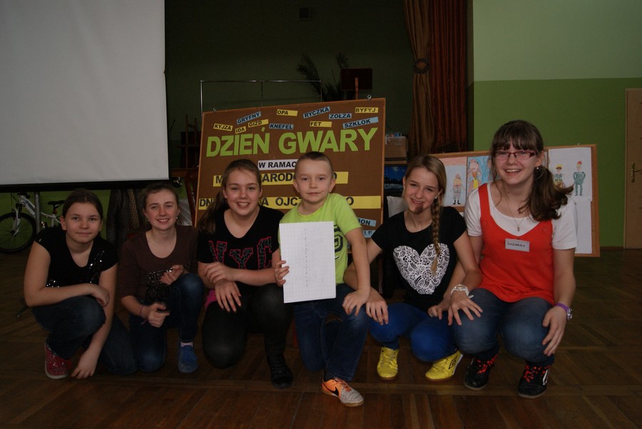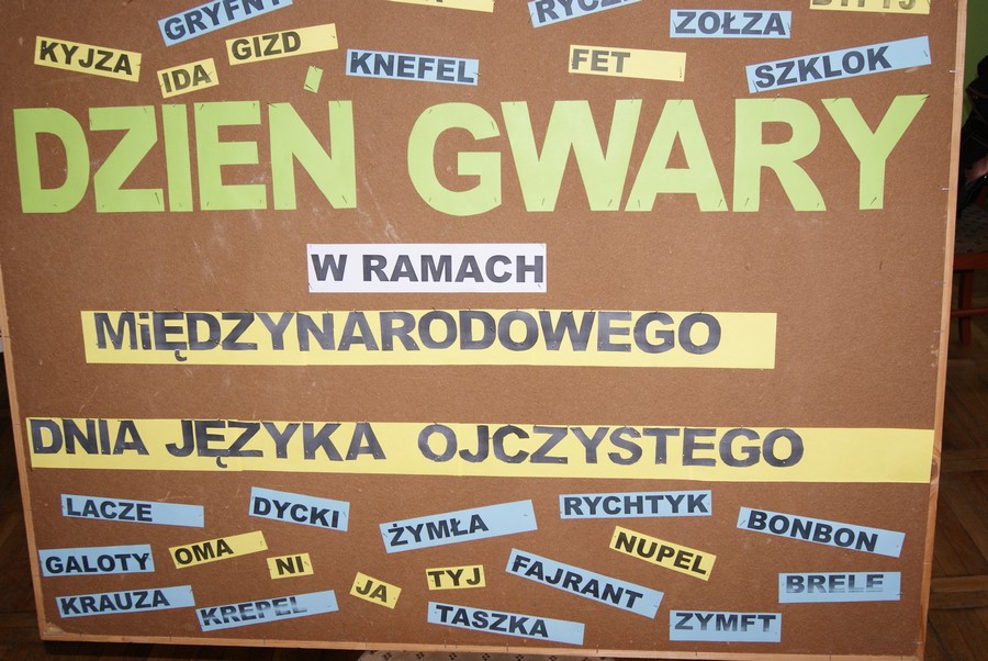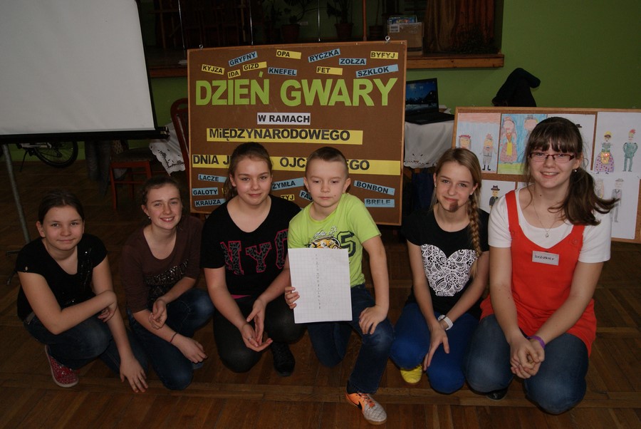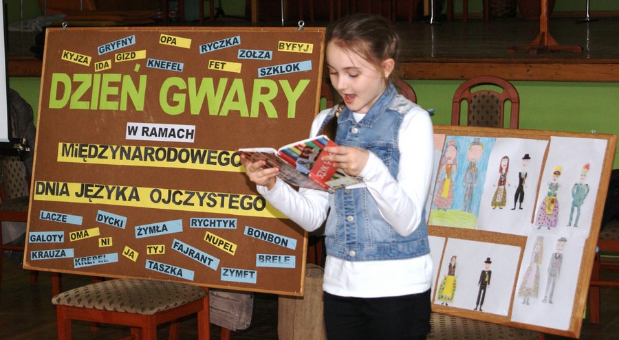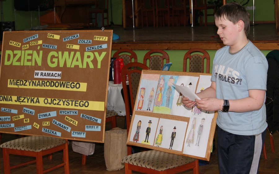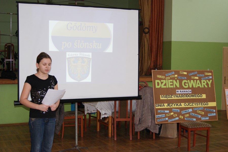 Na początek uczniowie przedstawili w formie prezentacji multimedialnej garść informacji o dialekcie śląskim. Następnie wysłuchali śląskiej wersji utworu „Pan Hilary” i przedstawili napisane przez siebie opowiadania. Całość przeplatały śląskie piosenki. Na koniec dzieci sprawdziły swoją znajomość gwarowego słownictwa poprzez przygotowanie krzyżówek i pracę ze słowniczkami.