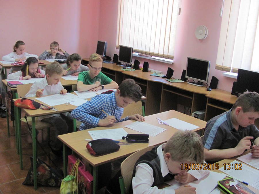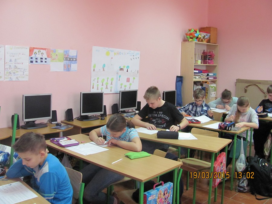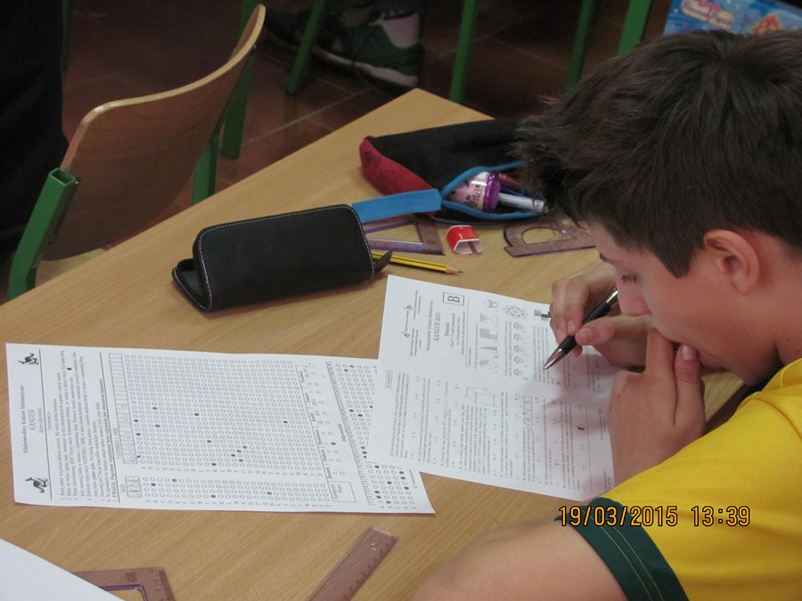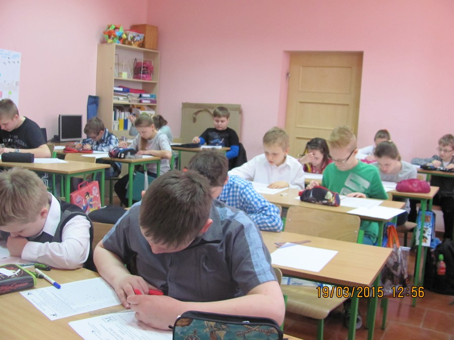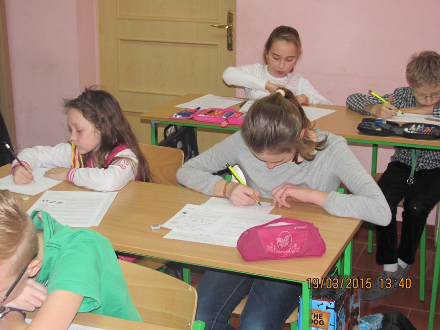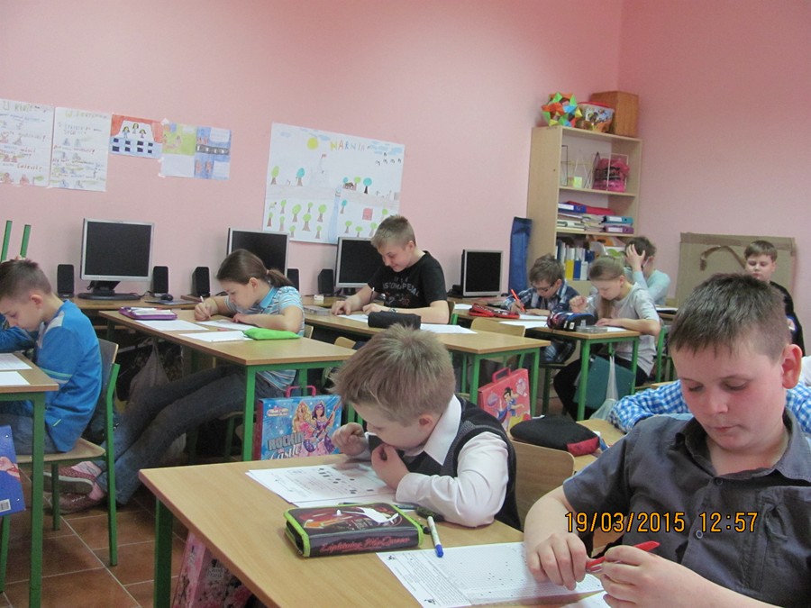 W czwartek, 19 marca uczniowie naszej szkoły wzięli udział w Międzynarodowym Konkursie Kangur. Do konkursu przystąpiło 16 osób: trzy osoby z klasy drugiej pisały zadania z kategorii "Żaczek", sześć osób z klasy trzeciej i czwartej rozwiązywało zadania z kategorii "Maluch" i siedem osób zmagało się z zadaniami z kategorii "Benjamin". Główną umiejętnością badaną przez Kangura jest umiejętność myślenia logicznego, a nie czysta wiedza i znajomość wzorów. Uczniowie biorący udział w konkursie wyróżniają się na tle klasy dużą łatwością w rozwiązywaniu łamigłówek matematycznych i ciekawych, nietypowych zadań.