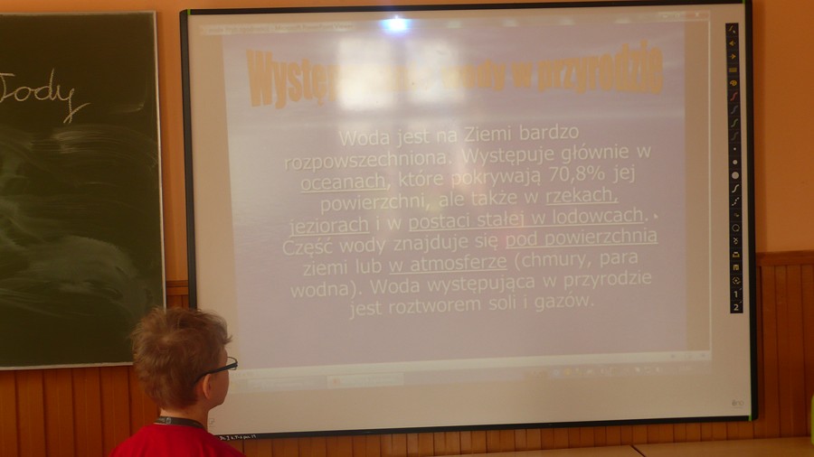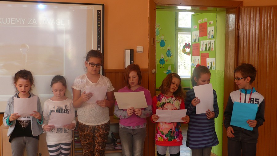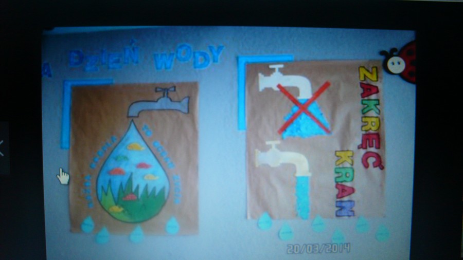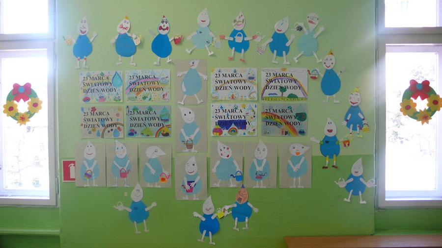 Przeprowadzono pogadankę, obejrzano prezentację, jak również odczytano referaty napisane przez uczniów na temat ważności wody w życiu człowieka, roślin i zwierząt. Bardzo ciekawym momentem było wykonanie przez uczniów prac plastycznych, w których z białych i niebieskich kartek tworzyli postać kropelki wody. Z prac tych utworzono wystawę.