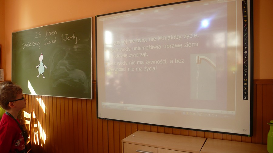 W ramach realizacji programu „Szkoła promująca zdrowie” dnia 23 marca w naszej szkole dla uczniów klas I-III odbyła się prelekcja z okazji Światowego Dnia Wody. Głównym celem było uświadomienie znaczenia wody w życiu człowieka, wpajanie zdrowych nawyków -picie wody mineralnej, poznanie sposobów oszczędzania wody w życiu codziennym.