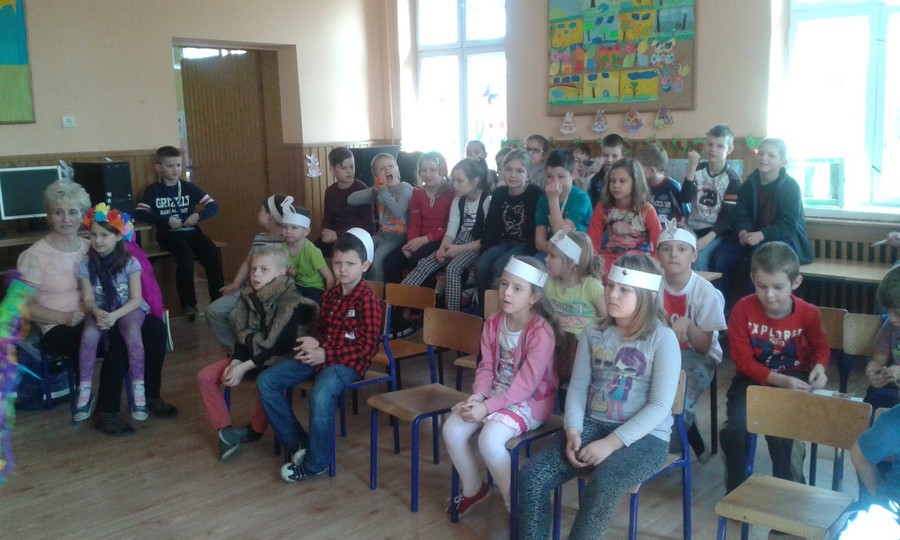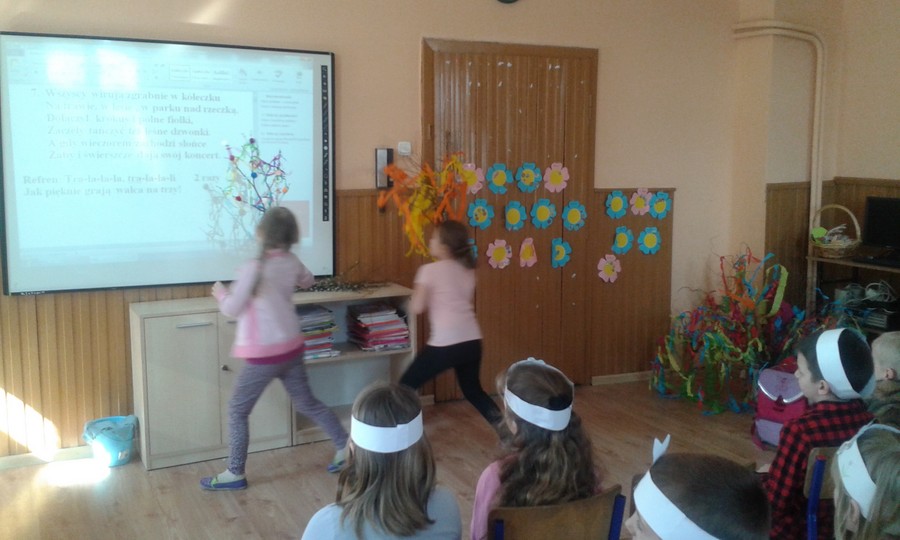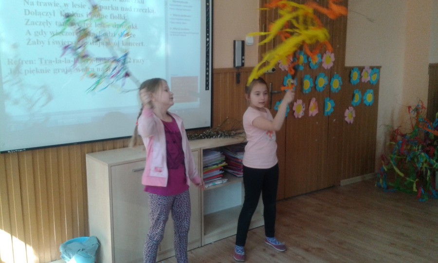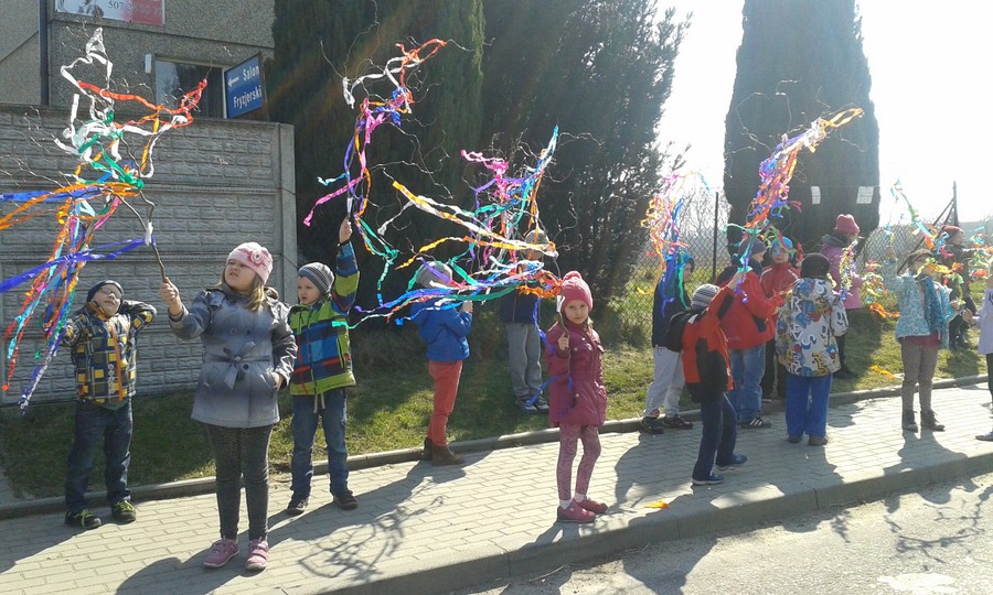 20 marca uczniowie młodszych klas radośnie powitali wiosnę.