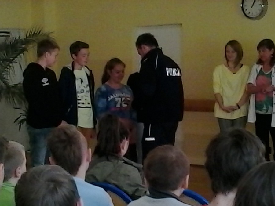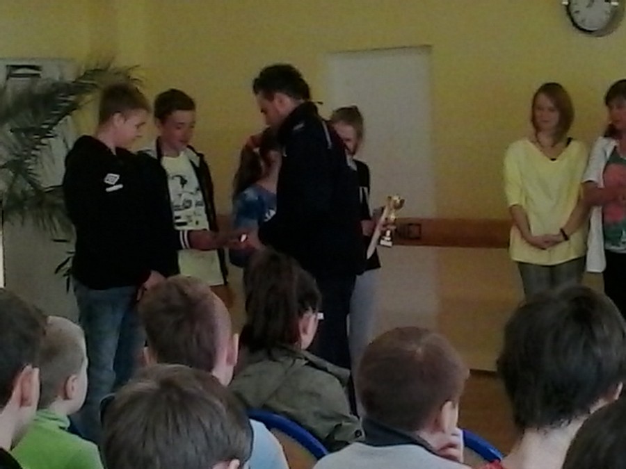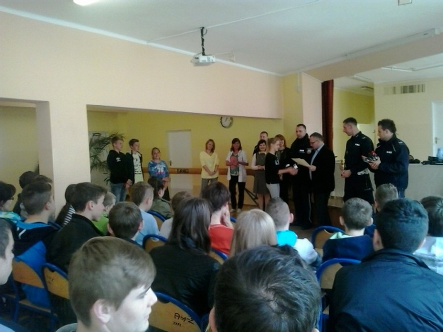 W środę, 29 kwietnia w Gimnazjum nr 3 im. Augustyna Weltzla przy ulicy Żorskiej w Raciborzu odbył się Ogólnopolski Turniej Bezpieczeństwa w Ruchu Drogowym – etap powiatowy. Patronat nad imprezą sprawowała Komenda Powiatowa Policji w Raciborzu oraz Kuratorium Oświaty w Katowicach. We współzawodnictwie wzięło udział 12 zespołów, w tym 6 ze szkół podstawowych i 6 z gimnazjów z terenu całego powiatu raciborskiego. Naszą szkołę reprezentowała drużyna w składzie: Ewa Kocjan, Patrycja Kura, Dawid Broża oraz Jakub Głogiewicz. Zawodnicy musieli zmierzyc sie z testem z wiedzy i skrzyżowań, jazdą sprawnościową po torze przeszkód oraz udzielaniem pierwszej pomocy przedmedycznej. Nasza drużyna wykazała sie bardzo dobrą znajomością przepisów ruchu drogowego, świetną praktyczną umiejętnością wykonywania resuscytacji krążeniowo-oddechowej i niezwykłą sprawnością przy pokonywaniu przeszkód toru rowerowego zdobywając tym samym I miejsce i kwalifikację do etapu okręgowego. Ale na tym sukcesy naszej drużyny sie nie skończyły, ponieważ nasza uczennica, Ewa Kocjan, została najlepszą zawodniczką turnieju w kategorii szkół podstawowych.