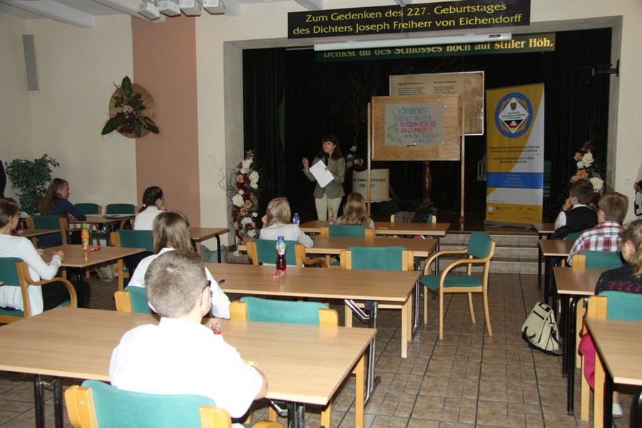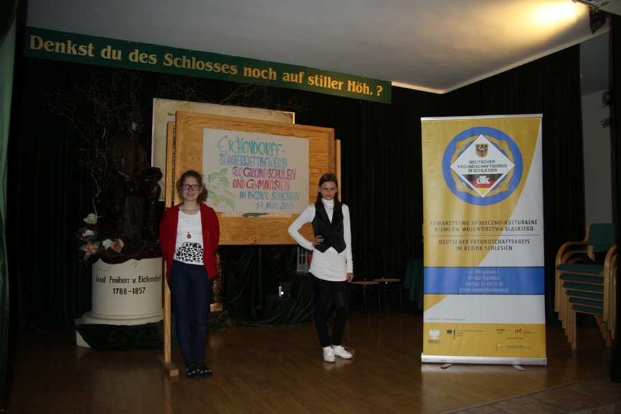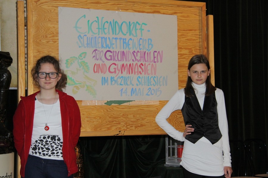 14 maja odbył się w Górnośląskim Centrum Kultury i Spotkań w Łubowicach wojewódzki konkurs dla szkół podstawowych i gimnazjalnych o życiu i poezji Josepha von Eichendorffa. W pierwszym etapie konkursu uczestnicy rozwiązywali test dotyczący życia łubowickiego poety. Każdy uczeń wyrecytował wiersz bądź odczytał fragment prozy Eichendorffa w języku niemieckim . Jolanta Krasek z kl. IV wyrecytowała wiersz „Bei einer Linde”, zaś Julia Herok z kl. V – „Mondnacht”. Obie dziewczyny świetnie sobie poradziły! Bardzo serdecznie gratulujemy Julii Herok, która została laureatem tego konkursu! Podczas specjalnej gali, która będzie miała miejsce 24 maja w Chorzowie z okazji 25 jubileuszu działalności TSKN, wszystkim laureatom, także i Julii, wręczone zostaną nagrody.