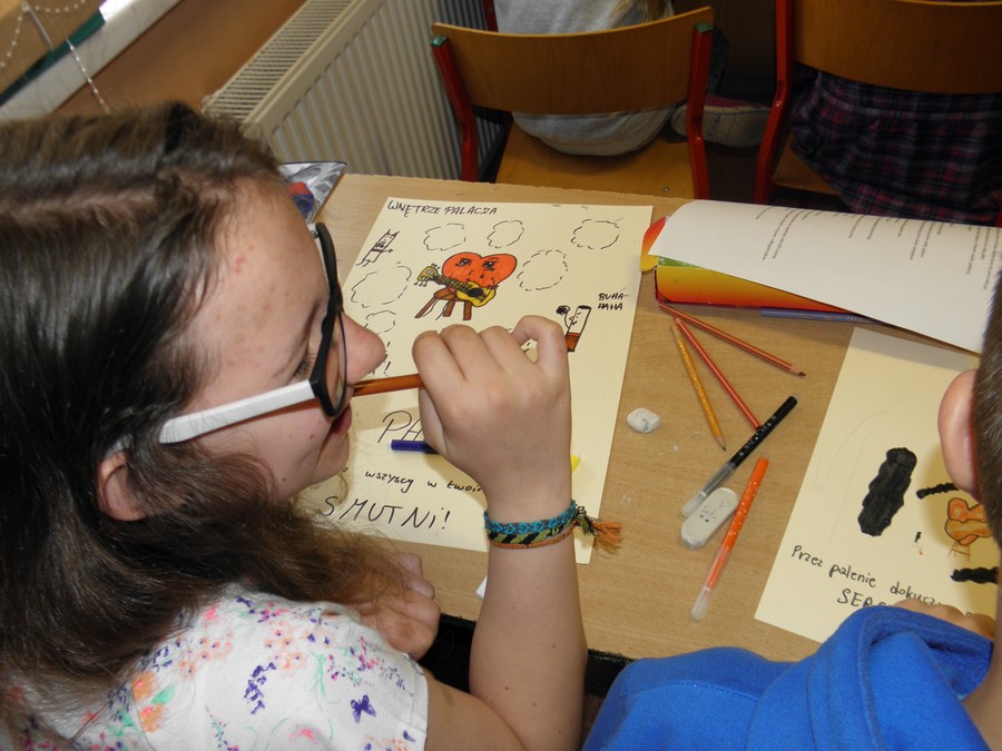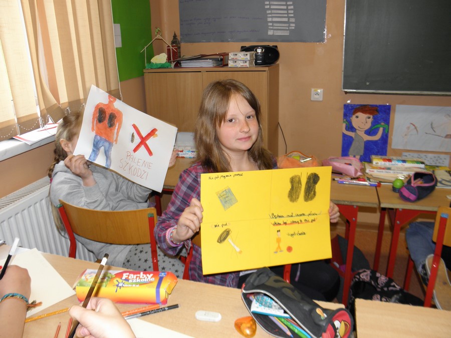 Uczniowie na zajęciach byli bardzo aktywni, z dojrzałością podeszli do zagadnienia palenia tytoniu, z zaangażowaniem odgrywali scenki dotyczące zachowań asertywnych. Dzięki programowi pogłębili swoja wiedzę na temat szkodliwości nałogowego palenia, co pokazał przeprowadzony na koniec krótki test. Klasa V oraz VI wykonała w ramach programu również plakaty antynikotynowe, które miały na celu skutecznie zniechęcić do sięgania po papierosy.