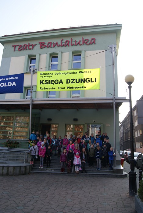 W miniony piątek, 30 października 2015 r. nasi uczniowie wzięli udział w niezwykłym wydarzeniu. Odwiedziliśmy Teatr Lalek Banialuka w Bielsku-Białej, gdzie zobaczyliśmy adaptację Księgi dżungli. Uwspółcześniona interpretacja utworu R. Kiplinga okazała się niesamowitym widowiskiem. Na scenie można było zobaczyć różnorodne formy lalkowe i totemiczne oraz oryginalne maski. W gąszcz dżungli wciągnęła widzów nie tylko interesująca scenografia, ale także odwołująca się do etnicznych rytmów muzyka. Natomiast historia grzecznej i serdecznej Alicji zachwyciła oraz skłoniła do refleksji zarówno uczniów jak i opiekunów.