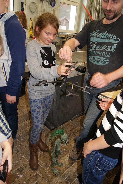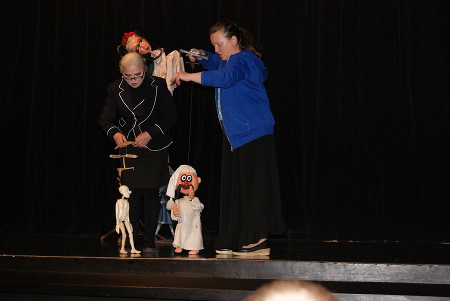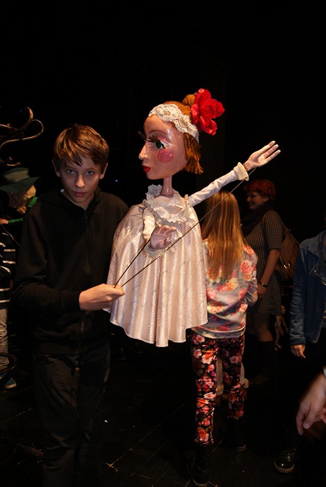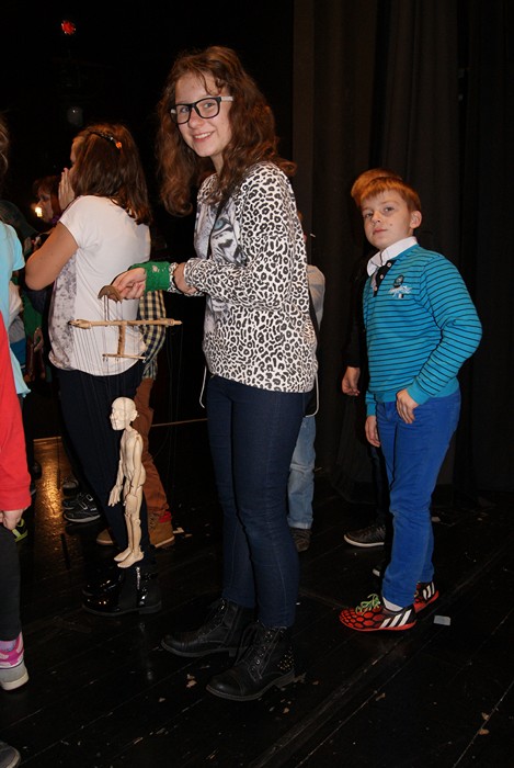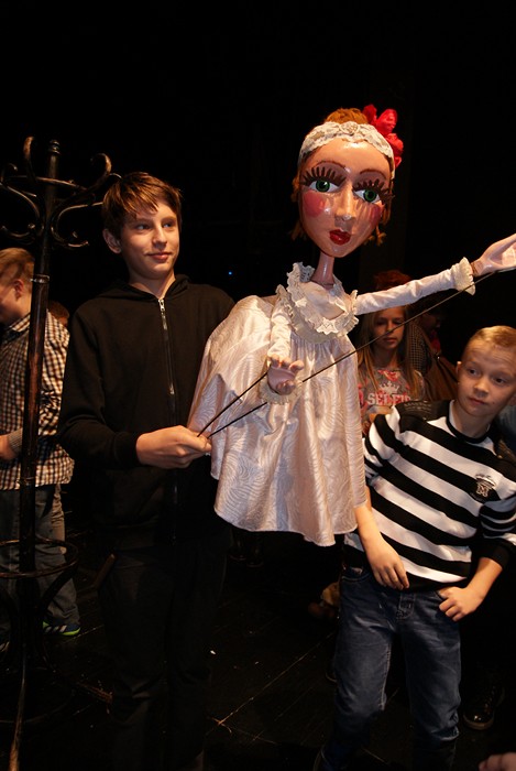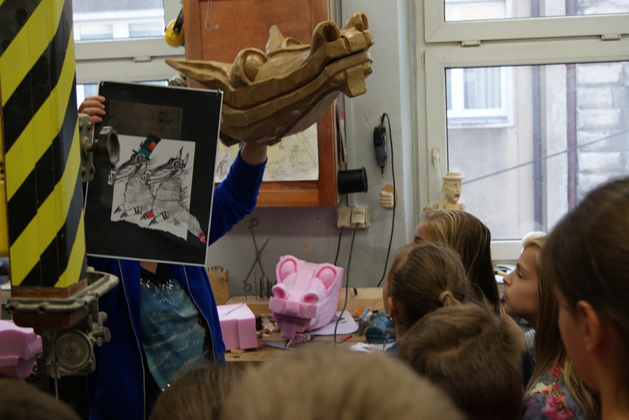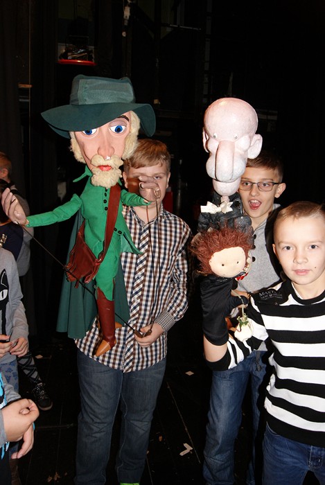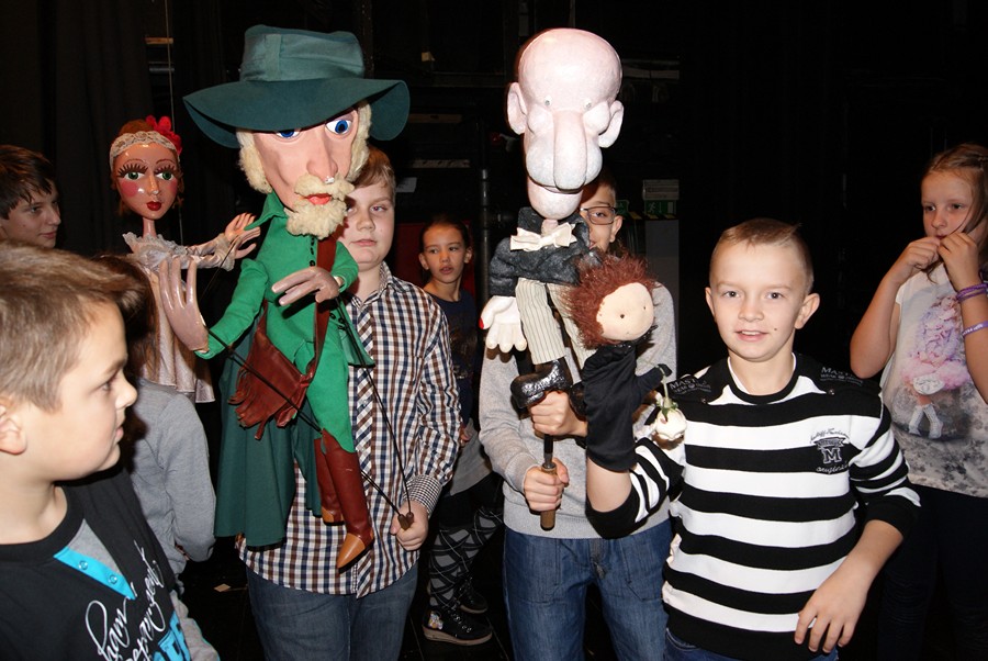 Po spektaklu dzieci uczestniczyły w warsztatach, podczas których aktorki odkryły przed nimi tajniki pracy w teatrze lalek: oprowadziły po magicznych miejscach teatru – każdy mógł zwiedzić kulisy, odwiedzić pracownie, gdzie wykonuje się lalki, maski, stroje itp., podejrzeć przygotowania do innej sztuki. Z pewnością najciekawsza była możliwość zobaczenia z bliska różnych rodzajów lalek oraz próba manipulowania nimi. Dodatkową atrakcją był spacer po mieście do pomnika Bolka i Lolka.