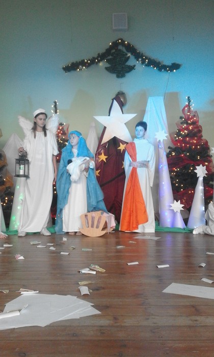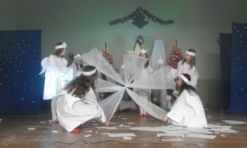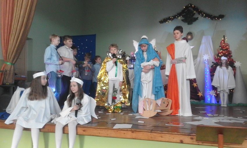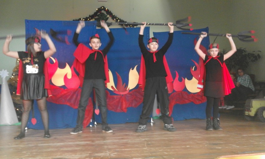 W piątek, w Gminnym Ośrodku Kultury w Kobyli odbyło się coroczne spotkanie seniorów naszej gminy. Z tej okazji uczniowie naszej szkoły przygotowali przedstawienie jasełkowe. Przedstawienie tradycyjnie rozpoczął aniołek kolędą "Cicha noc", ale na scenie pojawiły się również diabły knujące chytry plan kuszenia człowieka, Mały Książę szukający dobroci wśród ludzi no i oczywiście Święta Rodzina z Dzieciątkiem, które niesie radość i pokój całemu światu. Mali aktorzy doskonale wcielili się w swoje role i wprowadzili wszystkich w świąteczny nastrój.