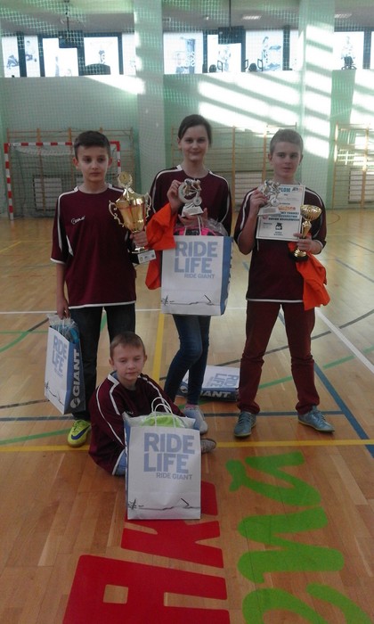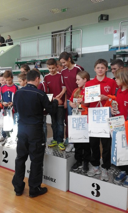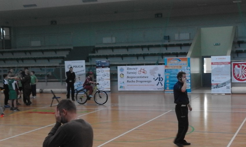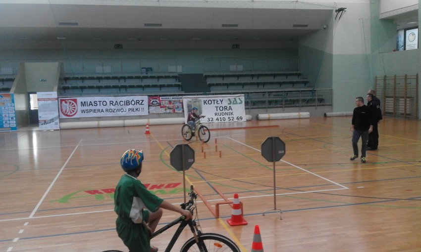 Dziś w Arenie Rafako w Raciborzu odbył się IV Turniej Bezpieczeństwa Ruchu Drogowego. W turnieju wzięło udział czternaście 4-osobowych drużyn składających się z uczniów klas IV-VI szkół podstawowych z terenu powiatu raciborskiego. Organizatorami konkursu była Komenda Powiatowa Policji w Raciborzu i Ośrodek Sportu i Rekreacji w Raciborzu. Każdy zawodnik w drużynach brał udział w jednej spośród następujących konkurencji: test wiedzy o ruchu drogowym (20 pytań z zasad i przepisów ruchu drogowego), jazda rowerem na czas, jazda rowerem po torze przeszkód, strzelanie do tarczy przy użyciu trenażera laserowego, resuscytacja krążeniowo-oddechowa. O udziale członka drużyny w danej konkurencji decydowało losowanie przeprowadzone przez sędziów, z wyjątkiem resuscytacji krążeniowo-oddechowej, gdzie drużyna wyznaczała swojego reprezentanta. Naszą szkołę reprezentowała drużyna w składzie Jolanta Krasek, Błażej Ber, Mariusz Sitek i Krzysztof Szymiczek. Jola bezbłędnie zaliczyła resuscytację krążeniowo-oddechową oraz zdobyła I miejsce z testu wiedzy o ruchu drogowym, Krzysztof by ł najlepszy na najwolniejszym przejeździe, Mariusz był bezkonkurencyjny w strzelaniu do celu, Błażej całkiem nieźle poradził sobie na torze przeszkód i ostatecznie w rywalizacji nasza drużyna zajęła I miejsce. GRATULUJEMY I ŻYCZYMY DALSZYCH SUKCESÓW!!!