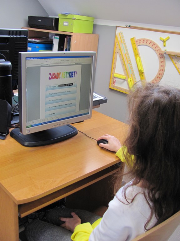 Komputer towarzyszy dziecku już od najmłodszych lat, dlatego także klasom młodszym w przystepny dla nich sposób poprzez prelekcję zostały przybliżone pojęcia netykiety i bezieczeństwa w Internecie.