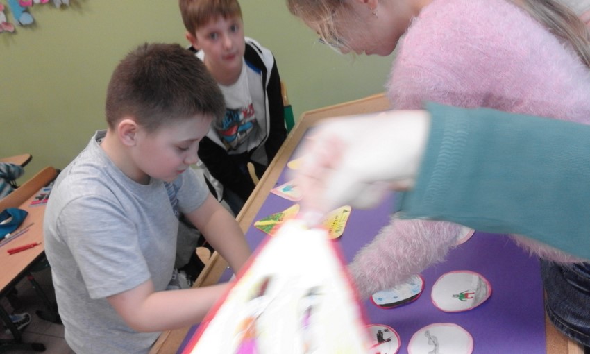 Klasa została losowo podzielona na dwie grupy, grupom zostały przydzielone odpowiednie zadania. Zadaniem grupy pierwszej było aktywne uczestnictwo w zajęciach prowadzonych przez panie ze Straży Miejskiej. Dzieci w skupieniu wysłuchały informacji, które pani Ania Cisak z właściwą sobie charyzmą przekazała. Uczniowie dowiedzieli się jakie niebezpieczeństwa czyhają na nie podczas ferii zimowych, jakie mogą być skutki ślizgania się na zamarzniętych rzekach i jeziorach, pani Ania mocno uczulała dzieci, aby do zabaw wybierały tylko właściwe - bezpieczne - miejsca. Przypominała także o odpowiednim zachowaniu w przypadku kiedy spotkają nieznajomą osobę, która zachowuje się podejrzanie.