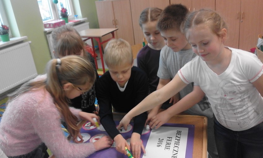 Ferie zimowe to wymarzony czas zabaw i odpoczynku dla dzieci. Aby jednak przebiegły one szczęśliwie należy pamiętać o podstawowych zasadach bezpieczeństwa. Celem przybliżenia naszym uczniom tych zasad, zorganizowaliśmy w szkole akcję "Bezpieczne Ferie". W ramach akcji, uczniowie wszystkich klas uczestniczyli w zajęciach profilaktycznych pt.”Bezpieczne ferie zimowe”, które zostały przeprowadzone przez Straż Miejską, klasa II przygotowała gazetkę informującą o prawidłowych zachowaniach w czasie zimowych zabaw, Samorząd Uczniowski zorganizowal konkurs plastyczny na najciekawszy znak drogowy reklamujący bezpieczne ferie, a w wszystkich klasach na zajęciach technicznych odbyły się pogadanki nt. bezpieczeń.stwa oraz sposobach wzywania i udzielania pierwszej pomocy. Dodatkowo uczniowie klas IV-VI wzięli udział w ogólnoloskim konkursie pt. "Sznupek radzi jak zimą bezpiecznie się bawić" zorganizowanym przez Wojewodę Śląskiego wraz ze Śląskim Kuratorem Oświaty, Komendantem Wojewódzkim Policji w Katowicach i Śląskim Państwowym Wojewódzkim Inspektorem Sanitarnym.