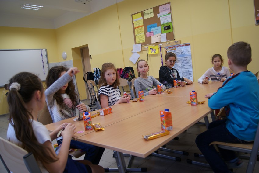 Chłopcy z klasy IV, jak przystało na młodych dżentelmenów, nie zapomnieli w tym dniu o swoich koleżankach i przygotowali dzisiaj dla nich wspaniała imprezę. Spotkanie obfitowało w wiele niespodzianek: były oczywiście życzenia i urocze upominki, poczęstunek, a także wspólne zabawy i konkursy. Atmosfera była przemiła. Dziękujemy oczywiście rodzicom za pomoc w przygotowaniu!