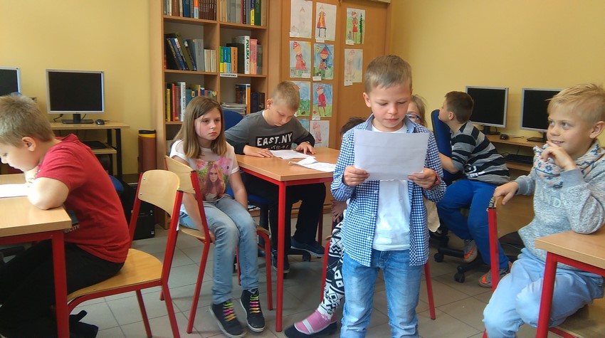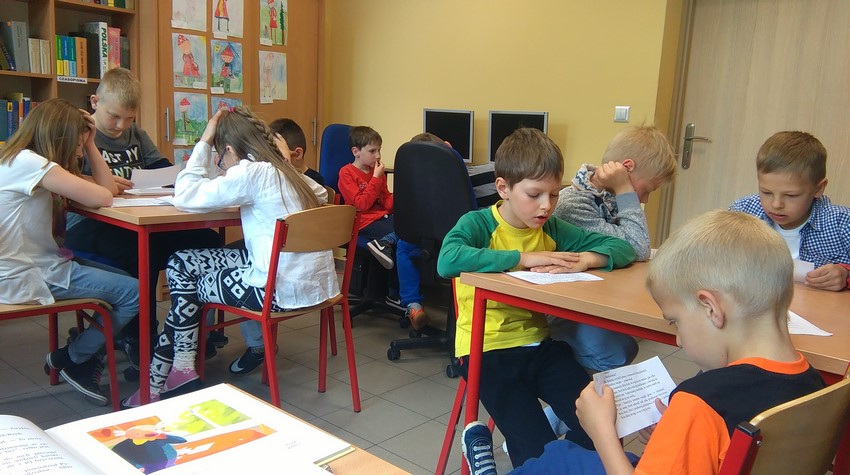 17 maja w bibliotece szkolnej najlepsi czytelnicy z klas młodszych zebrali się, by pokazać swoje umiejętności lektorskie. Pierwszy etap to przeczytanie tekstu wyuczonego. Każdy uczeń przed komisją pań z naszych bibliotek zaprezentował się jak najlepiej umiał. Drugi etap konkursu to przeczytanie tekstu otrzymanego na konkursie. Po podliczeniu punktów okazało się, że poziom uczniów jest bardzo wysoki, co świadczy o tym, że uczniowie dużo czytają. Niezmiernie się cieszymy z tego faktu. Jak widać na fotografii, większość stanowili chłopcy. I też oni okazali się najlepszymi lektorami. Podczas poczęstunku uczniowie wysłuchali jeszcze opowiadania o panu Kuleczce i jego przyjaciołach, bo o nich dziś czytaliśmy. I na koniec rozdanie nagród. W każdej klasie wyloniliśmy najlepszego. W pierwszej klasie okazał się nim Paweł Zygmund, w drugiej Jakub Pytlik, a w trzeciej Adam Scheithauer. A dlaczego by nie czytać? Zachęcamy uczniów do podobnych konkursów. Już wkrótce konkurs czytelniczy dla klas starszych.