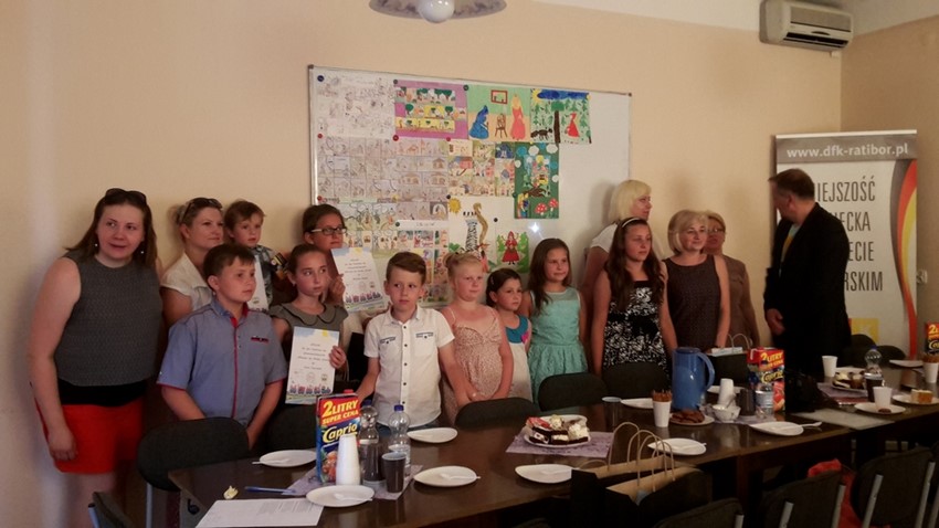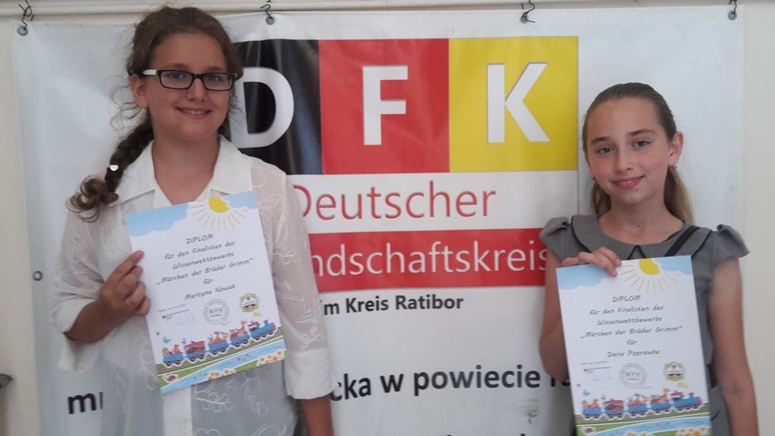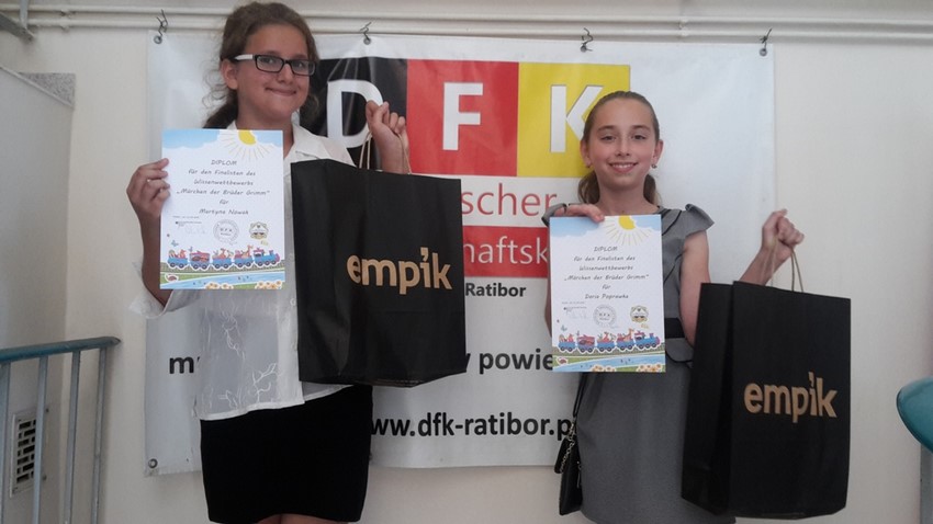DFK Oddział Racibórz zorganizował Powiatowy Konkurs pt. "Baśnie Braci Grimm". Konkurs skierowany był do Przedszkoli, Szkół Podstawowych i Szkół Gimnazjalnych. Przedszkolaki musiały namalować obrazek, szkoły podstawowe komiks, a gimnazjaliści napisać inne zakończenie dla wybranej baśni. Nadesłane prace oceniła komisja konkursowa przy DFK w Raciborzu. W czwartek, 23 czerwca w budynku DFK Oddział Racibórz odbyła się gala wręczenie nagród. Wśród finalistek tego konkursu znalazły się uczennicy szkoły w Kobyli: Martyna Nowak (kl. IV) oraz Daria Poprawka (kl. IV). Serdecznie dziewczynom gratulujemy!