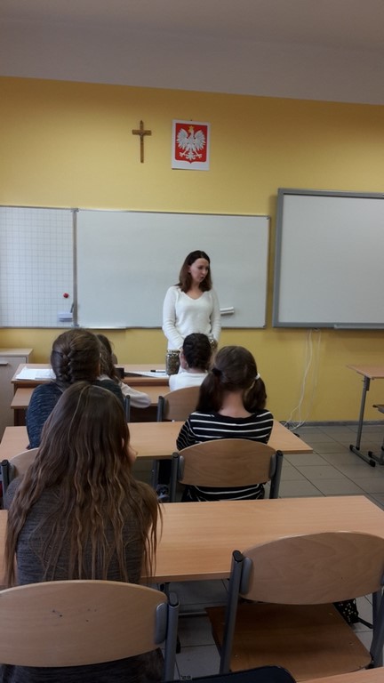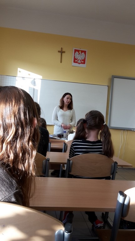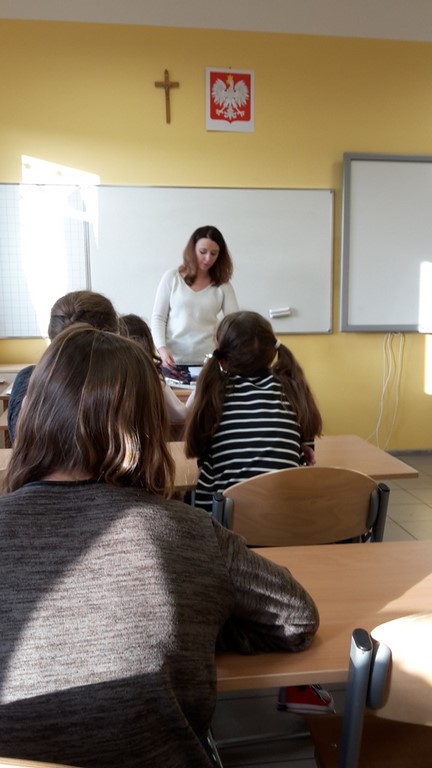 19 grudnia odwiedził Klub Odkrywców Niemieckiego działający w naszej szkole dzięki podpisaniu porozumienia z Domem Współpracy Polsko-Niemieckiej w Opolu specjalny gość – p. Anita Pendziałek, dziennikarka z polsko-niemieckiej redakcji Mittendrin. Pani Anita opowiedziała członkom klubu o swojej przygodzie z językiem niemieckim, a także o specyfice pracy dziennikarza radiowego. Klubowicze otrzymali od p. Anity także wiele ciekawych gadżetów!