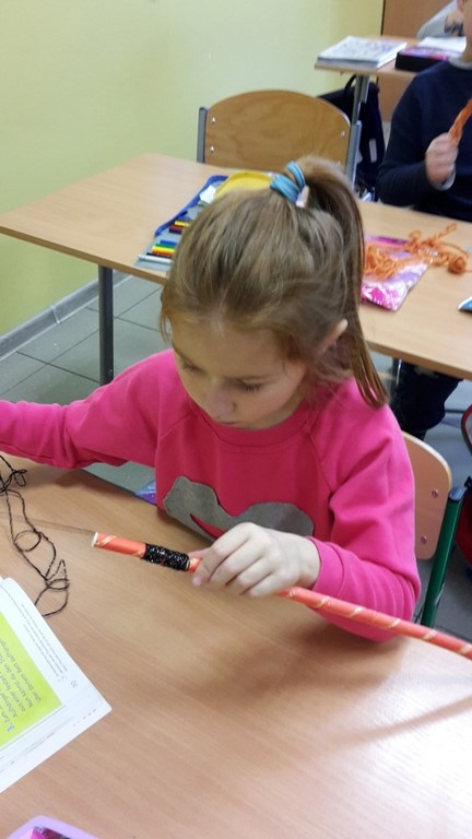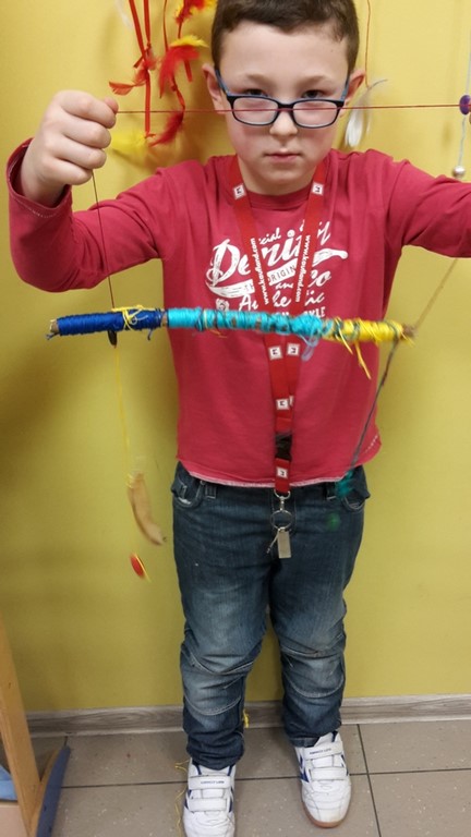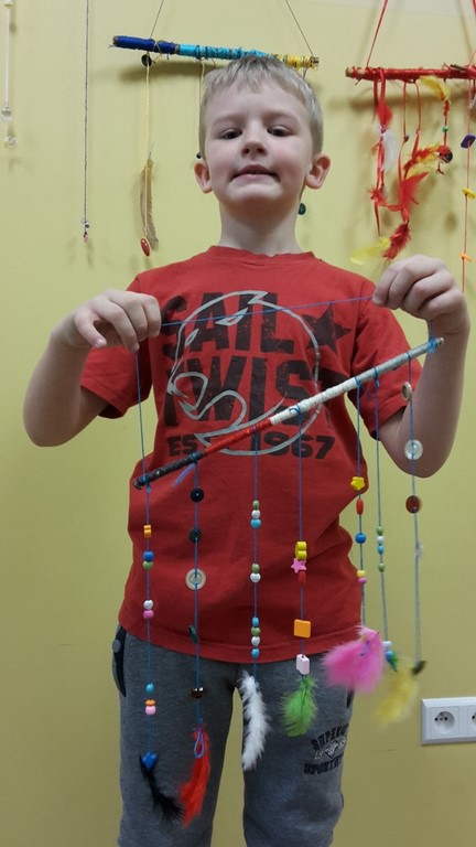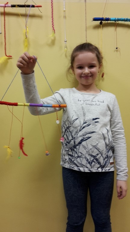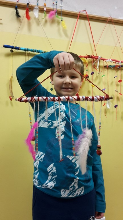 Uczniowie klasy I poznali także Indian oraz ich kulturę. Dowiedzieli się, że to właśnie plemienni Indianie wymyślili i tworzyli łapacze snów, którym przypisywali tajemną moc ochrony przed złymi snami. Wierzono, że zawieszony nad posłaniem łapacz snów ma chronić śpiącego przed marami sennymi. Złe sny miały być filtrowane przez sieć łapacza, a następnie, wraz z pierwszymi promieniami słońca, spłynąć swobodnie po piórach i przejść w niebyt. Pierwszoklasiści podczas zajęć wykonali wiszącą ozdobę, składającą się z gałęzi owiniętej włóczką oraz swobodnie zwisających piór, koralików, guzików oraz wstążek.
