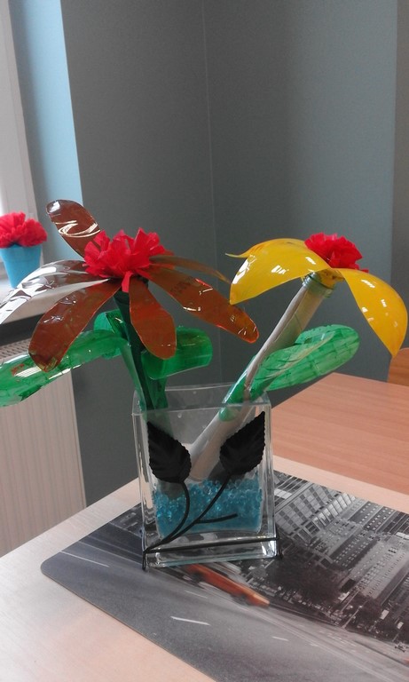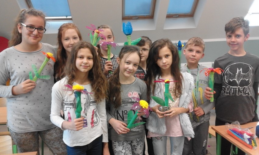 Idź śladem uczniów klasy V i przerób je na kolorowe i efektowne wiosenne kwiaty, które ozdobią każde mieszkanie, a satysfakcja z własnoręcznie wykonanej dekoracji będzie gwarantowana. Wystarczy tylko kilka plastikowych butelek, rolka po ręczniku papierowym, trochę kleju i farby akrylowej a wychodzą takie cuda jak na zdjęciach.