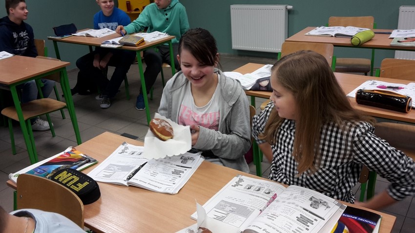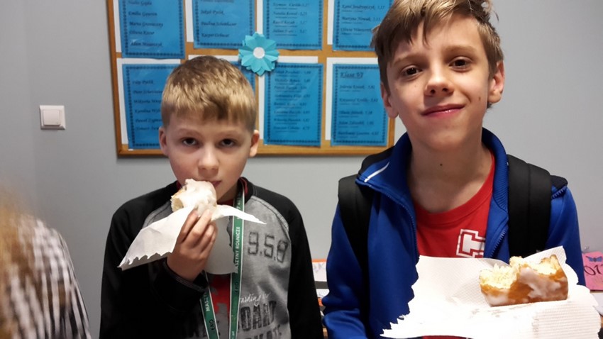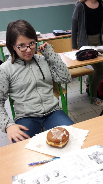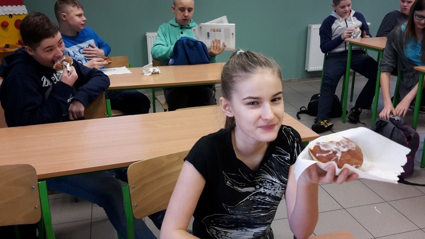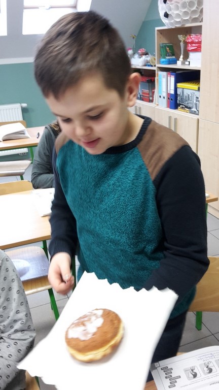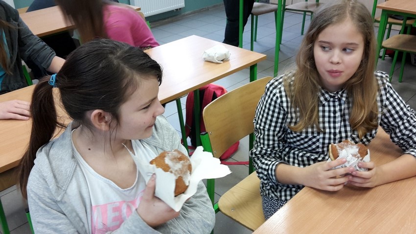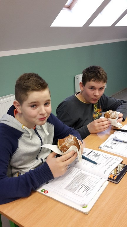 W tłusty czwartek nie powinno liczyć się kalorii. Zgodnie z tradycją w ostatni czwartek przed Wielkim Postem dozwolone jest objadanie się. I dlatego właśnie na trzeciej lekcji wszyscy wcinaliśmy pyszne pączki, ufundowane na tę okazję przez seniorów z Kobyli . A że wszyscy wiedzą, że jeden pączek w Tłusty Czwartek to za mało, na kolejnej lekcji dotarła do nas druga porcja pączków ufundowana tym razem przez rodziców, państwa Anity i Mariusza Dąbrowskich. Serdecznie dziękujemy za ten miły a przede wszystkim smaczny gest.
