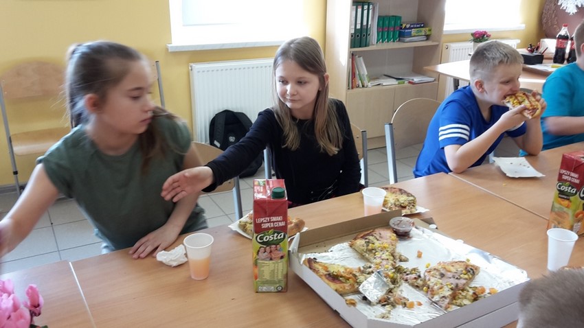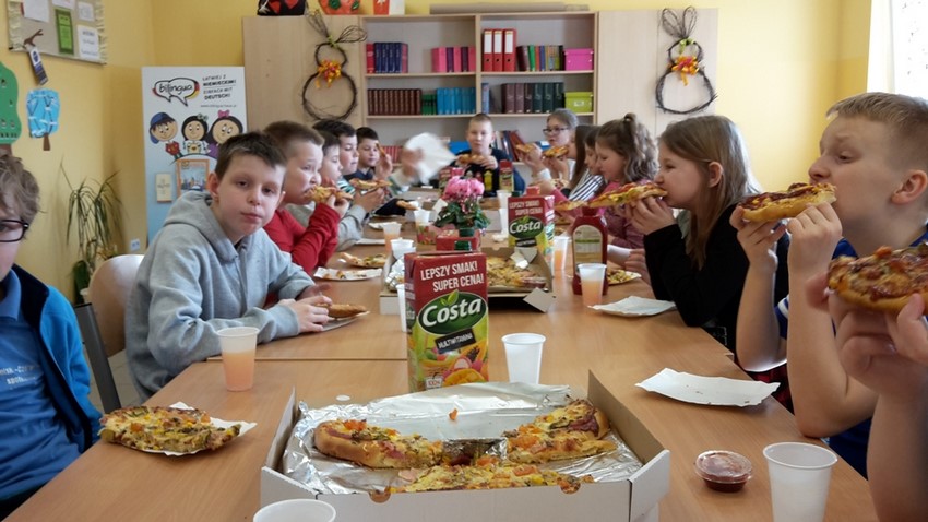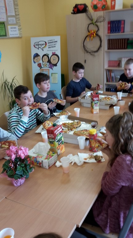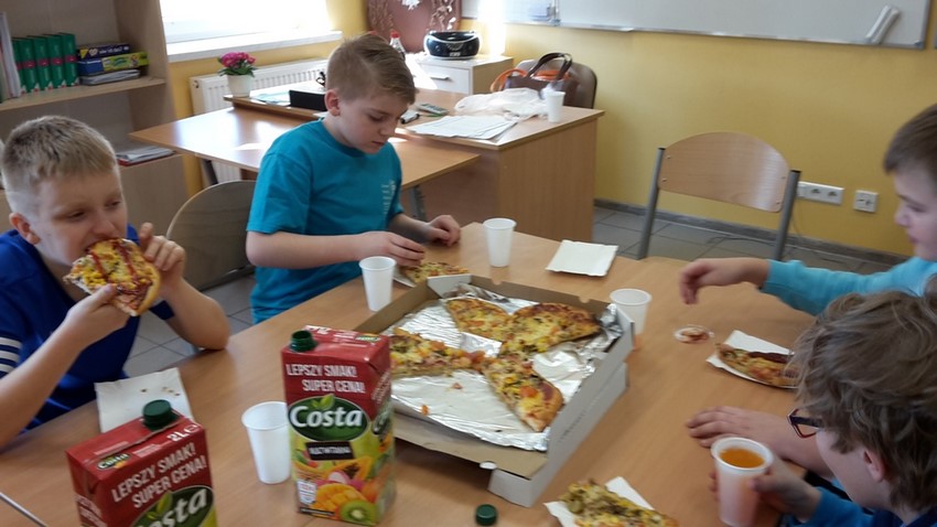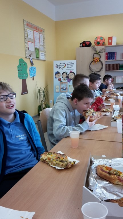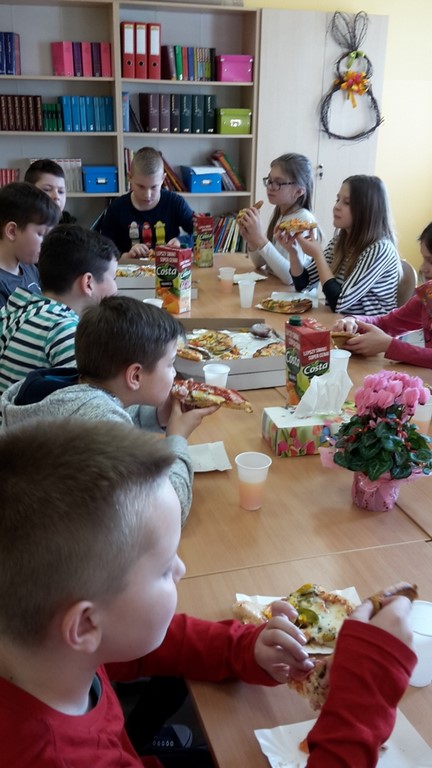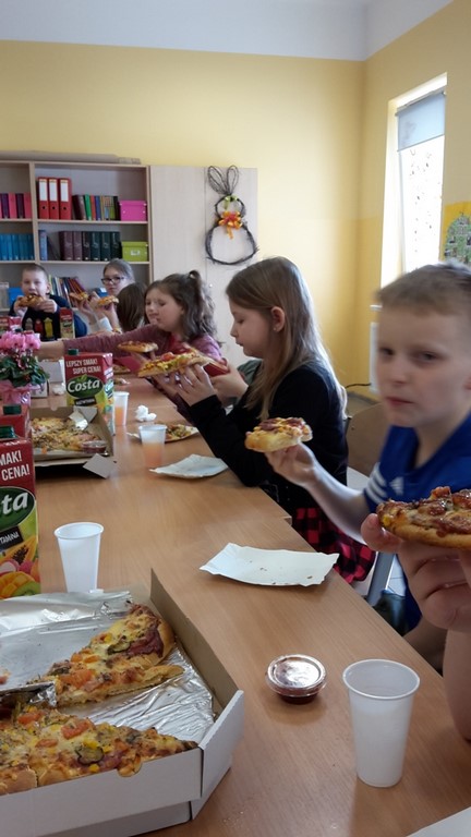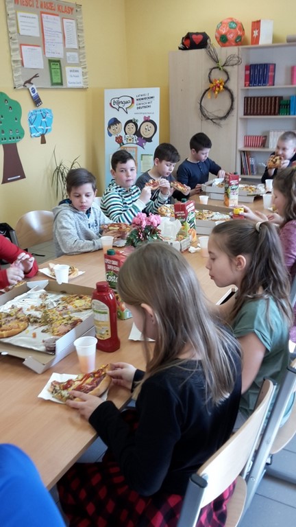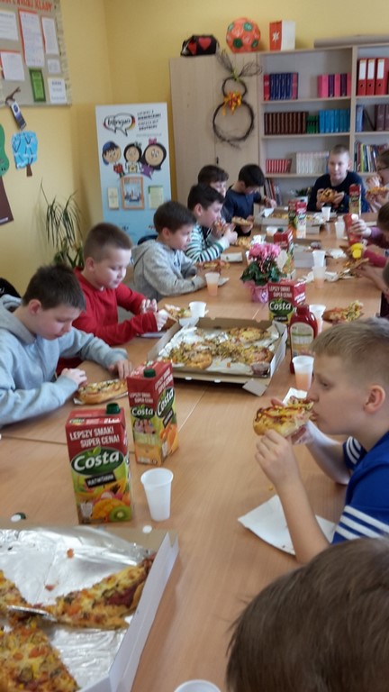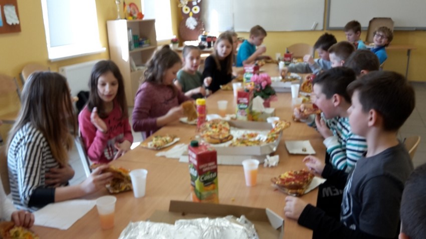 8 marca chłopcy z klasy IV zorganizowali dla swoich koleżanek z klasy moc niespodzianek. Oprócz życzeń i tradycyjnego odśpiewania "Sto lat", przygotowali wspólnie z rodzicami pyszny poczęstunek, a mianowicie pizzę, którą mogli się poczęstować zarówno dziewczyny, jak i chłopcy! Całą lekcję wychowawczą, podczas której świętowaliśmy Dzień Kobiet, klasie IV dopisywały humory! Dzień upłynął w miłej, pogodnej i życzliwej atmosferze!