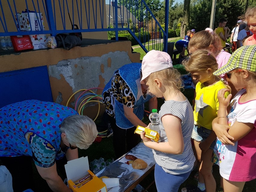 Między zawodami wszyscy kosztowali ufundowanych przez Radę Rodziców kiełbasek z grilla. Każdy uczeń mógł także poczęstować się świeżo robionym popcornem. Nie zabrakło równieżsłodkiego co nieco!