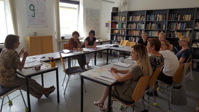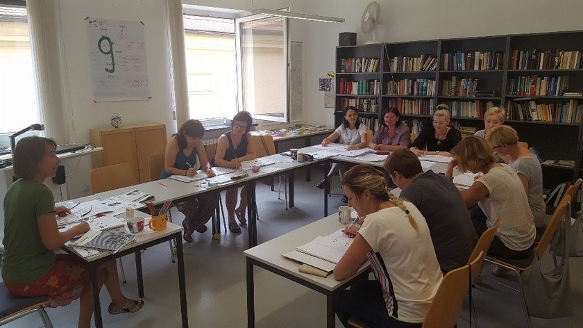 Trzon mojej grupy stanowiły głównie nauczycielki z Polski (9 osób), pozostałe trzy osoby pochodziły z Holandii, Czech i Hiszpanii. Zajęcia miały formę warsztatów, dzięki którym wszyscy mieli okazję aktywnie w nich uczestniczyć. Podczas zajęć z metodyki i dydaktyki przybliżono nam zasady funkcjonowania systemu szkolnictwa w Niemczech, z szczególnym uwzględnieniem Bawarii. Ponadto mieliśmy okazję uczestniczyć w zajęciach z fonetyki, krajoznawstwa, kreatywnego pisania, muzyki, aktywności ruchowych podczas nauki języka obcego oraz niemieckich produktów. Zajęcia prowadzone były przez wysoko wykwalifikowanych lektorów, specjalizujących się w nauczaniu języka niemieckiego.