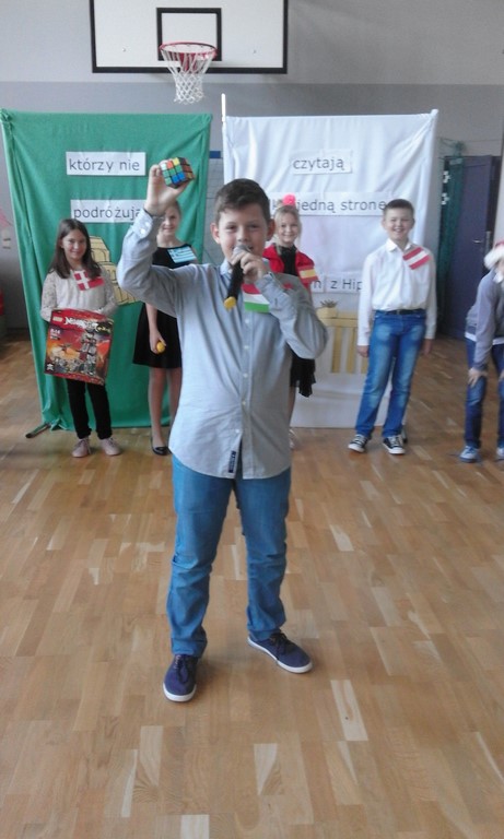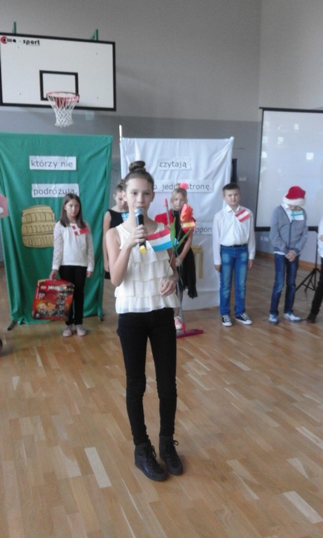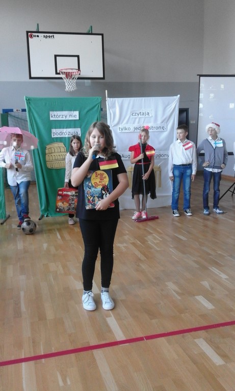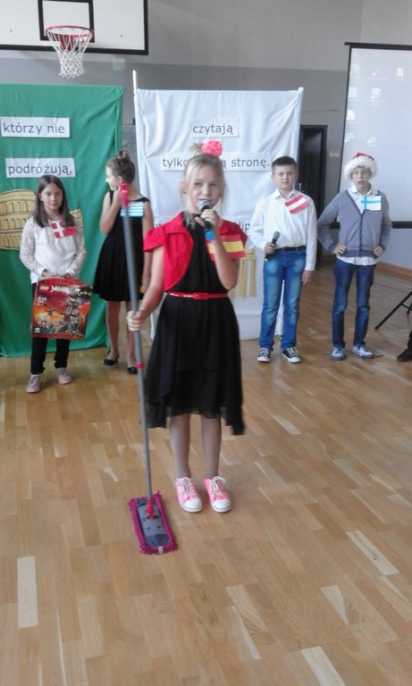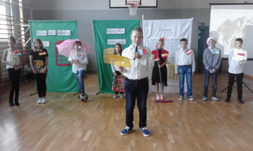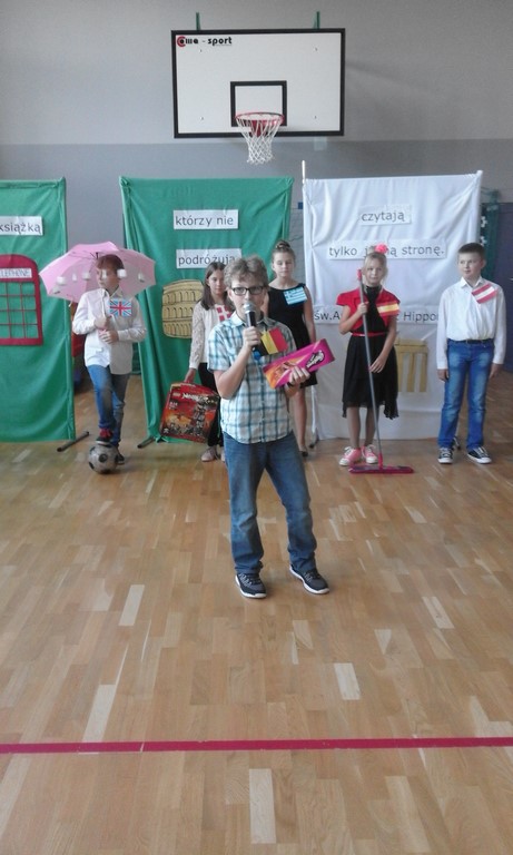 Najpierw uczniowie klasy VI przybliżyli zebranym ideę i cele Europejskiego Dnia Języków. Można się było na przykład dowiedzieć, że istnieje ponad 200 języków europejskich, w tym tylko 24 to języki urzędowe. Ponadto uczniowie klasy V namawiali wszystkich do podróżowania, przedstawiając za pomocą rekwizytów charakterystykę i ciekawostki dotyczące różnych państw europejskich. Poranek zakończył się mini-konkursem, podczas którego nagrodzono najbardziej uważnych słuchaczy.