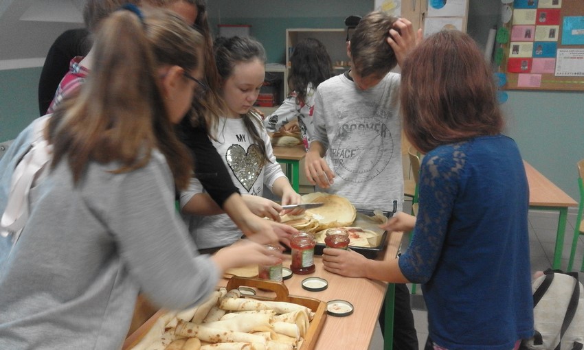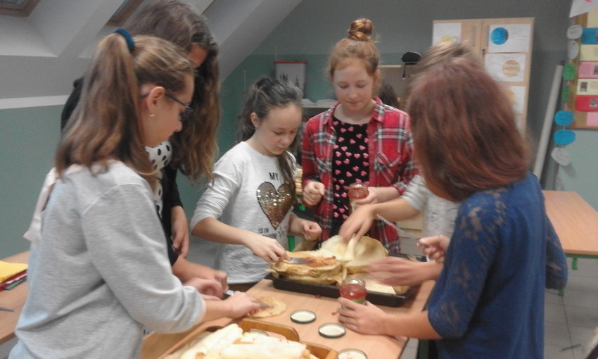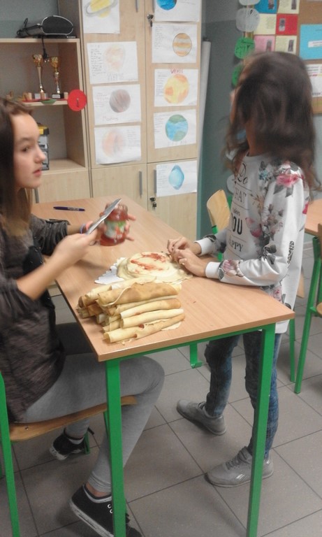 Po raz drugi w naszej szkole zorganizowaliśmy Dzień Naleśnika. W tym dniu klasa VI wraz z Samorządem Uczniowskim przygotowali wspaniałą ucztę. Prawie dwieście naleśników z dżemem lub cukrem pudrem (jak kto woli) czekało na uczniów w szkolnej świetlicy. Kolejka rozciągała się na cały korytarz i po dwóch przerwach, po naleśnikach nie było ani śladu. I tylko zadowolone buzie uczniów i ślady dżemu na policzkach, świadczyły o tym, że święto się udało.