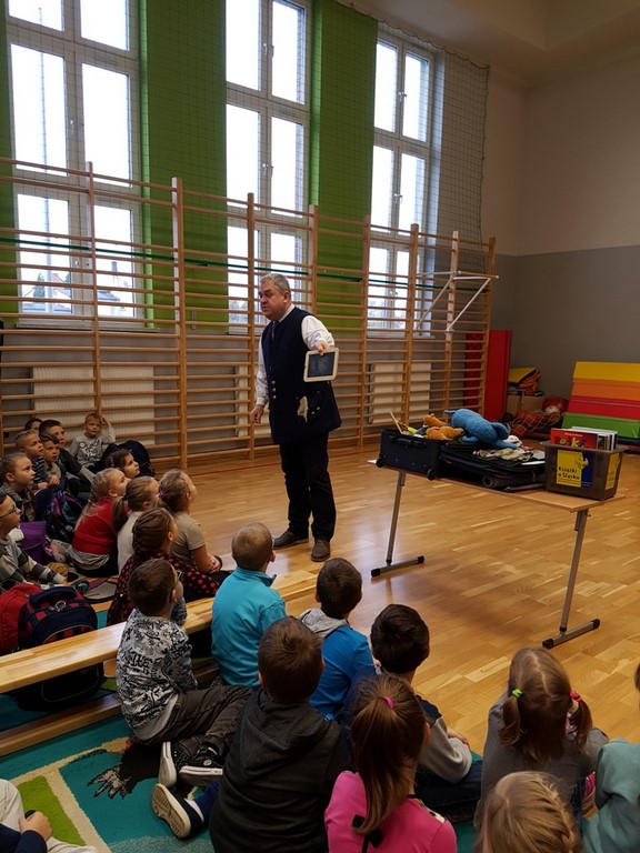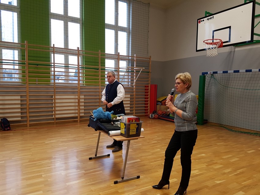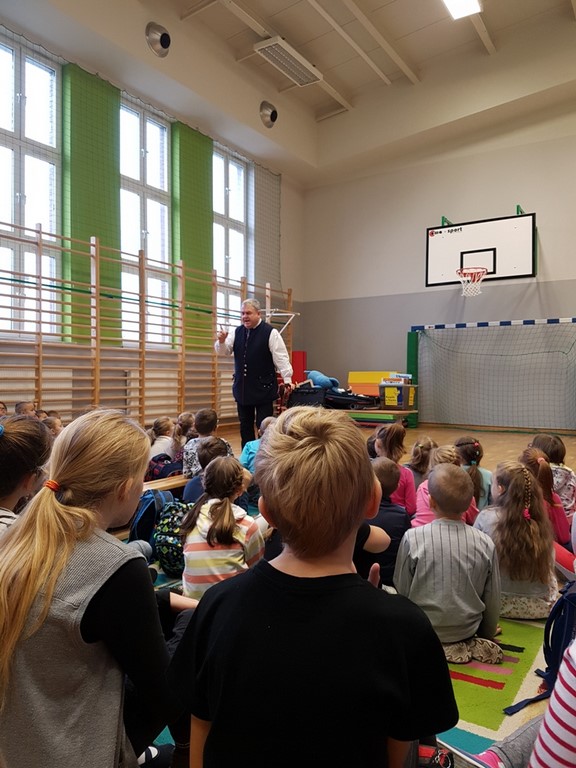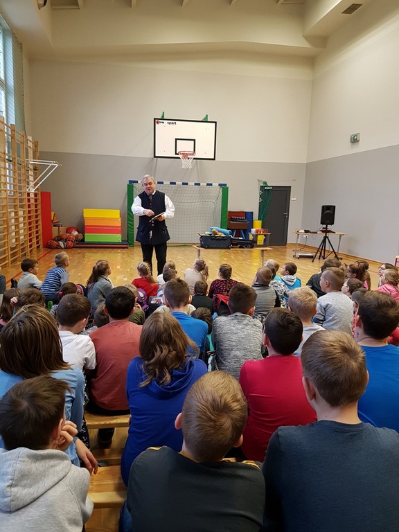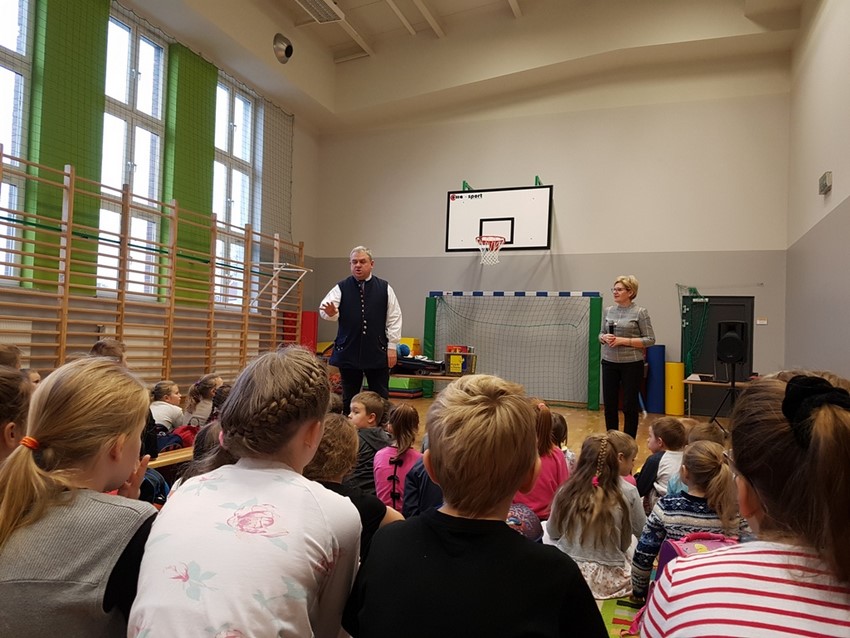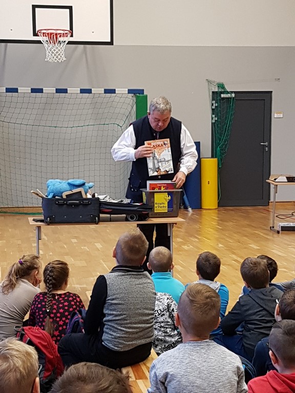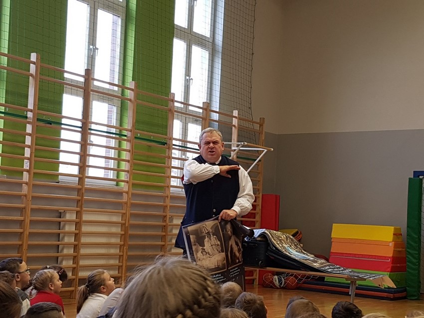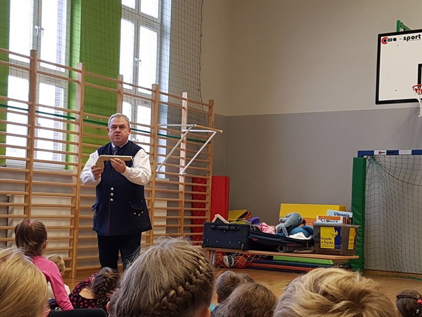 Pisarz w ciekawy sposób tłumaczył uczniom skąd biorą się niektóre śląskie słowa, powstające pod wpływem nie tylko języka niemieckiego czy czeskiego, ale także francuskiego – „gulik” i węgierskiego – „czako”. Pokazywał jakimi zabawkami dawniej bawiły się śląskie dzieci i w jakie grały gry, np. „gra klipa”. Opowiedział również trochę o świątecznych zwyczajach, Św. Mikołaju i Dzieciątku, które tylko na Śląsku w wigilię przynosi prezenty.