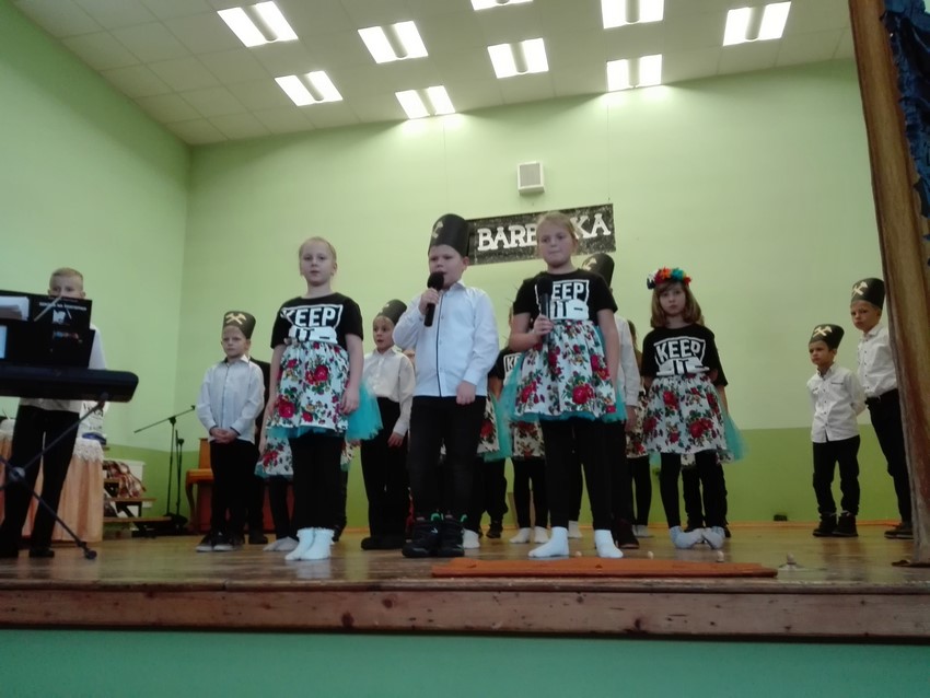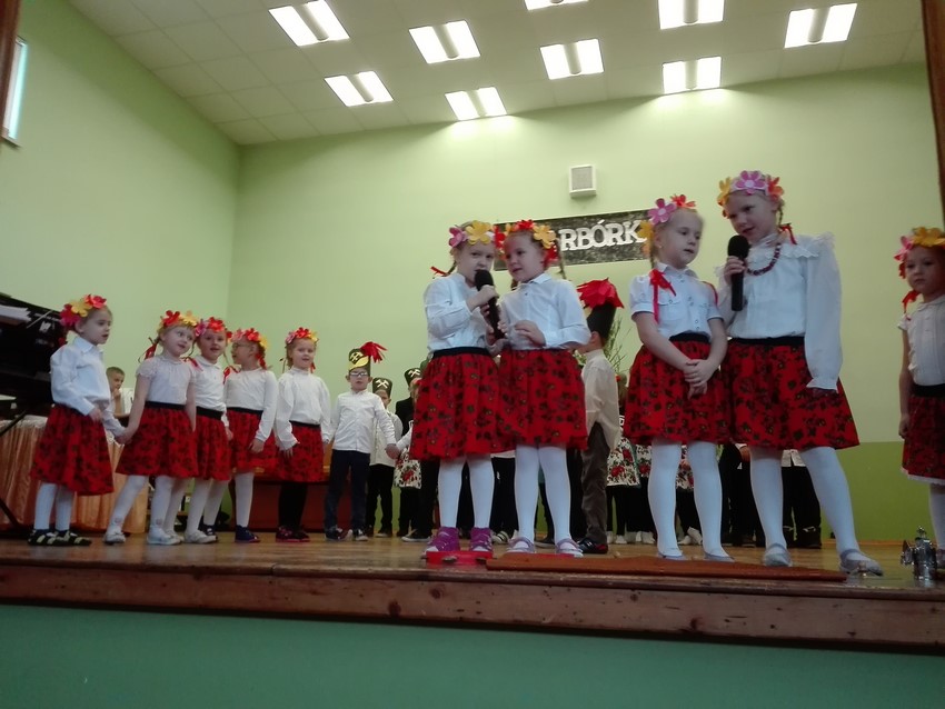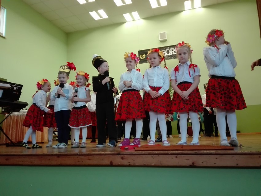 Scena zapełniła się dziećmi w pięknych strojach, które z dużym zaangażowaniem zaprezentowały różnorodne formy artystyczne tj. śpiew, taniec, muzyka grana na instrumentach, akrobatyka, recytacja i gwara śląska, formy dramy itp. Wdzięczna widownia oklaskiwała młodych, utalentowanych artystów gromkimi brawami.