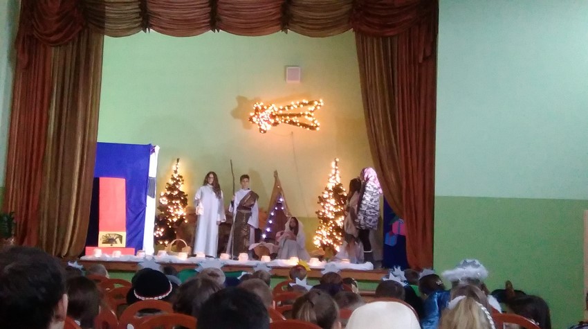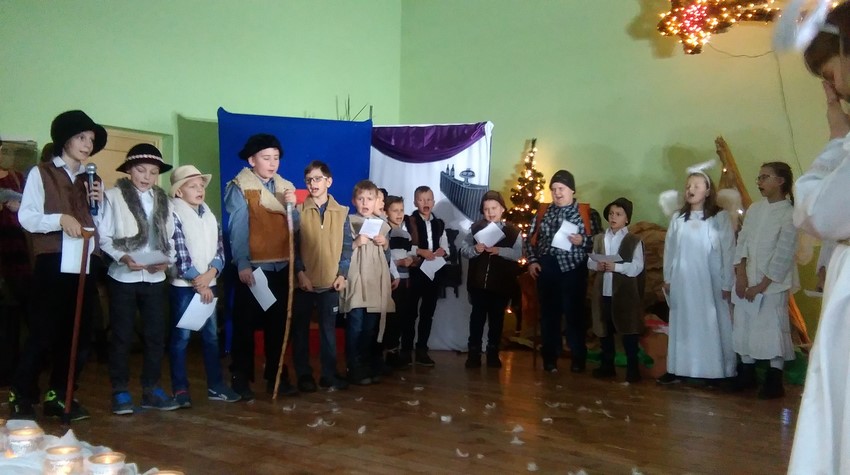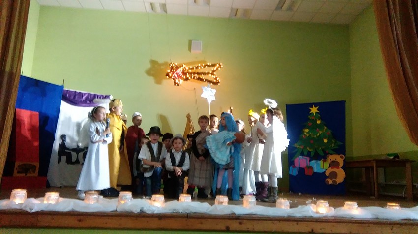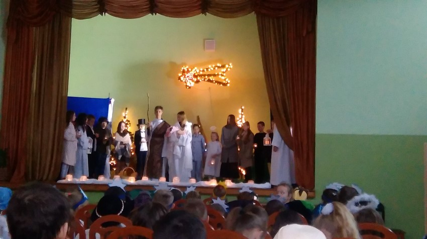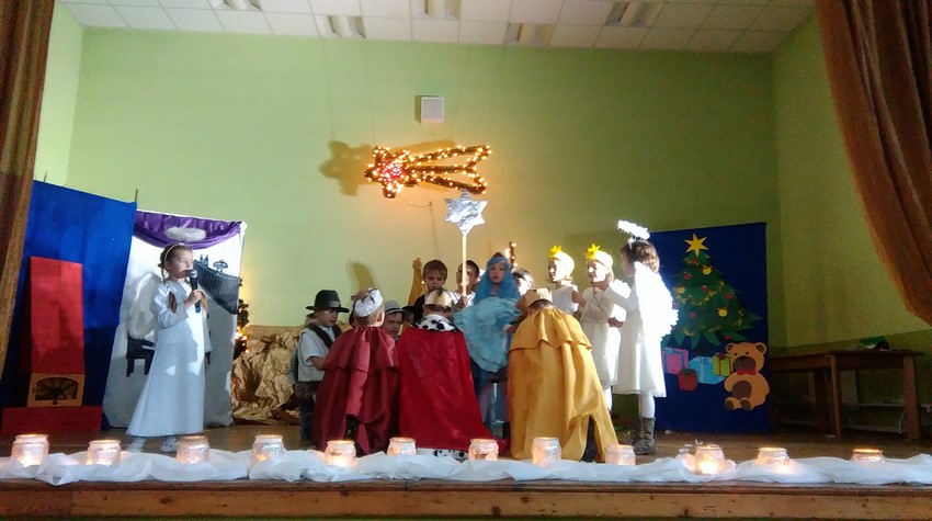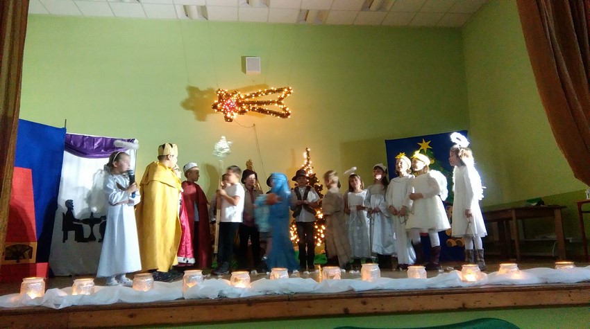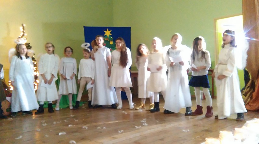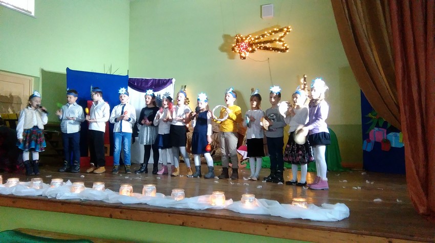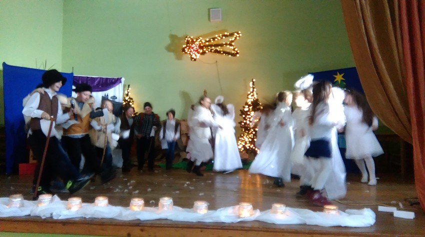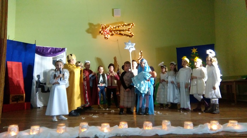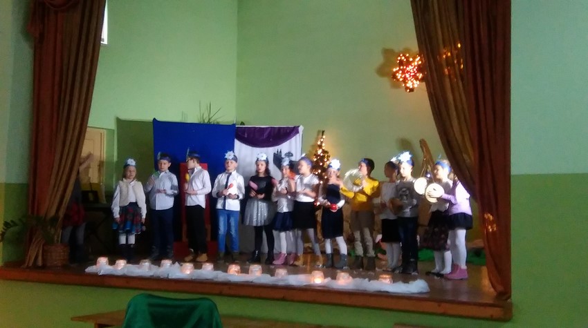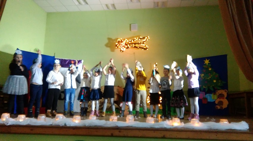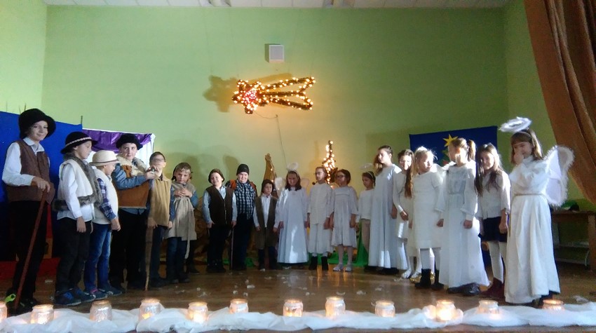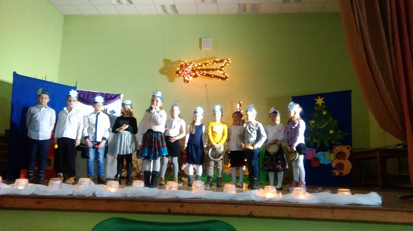 O poranku uczniowie w swoich klasach zorganizowali z wychowawcą wigilijkę, na której w gronie swoich kolegów mogli pośpiewać kolędy, podzielić się opłatkiem i złożyć świąteczne życzenia. Potem uczniowie mogli zobaczyć w Domu Kultury jasełka przygotowane przez starszych uczniów. Na koniec uczniowie klas młodszych zaśpiewali kolędy i pastorałki wprowadzając wszystkich w świąteczny nastrój.