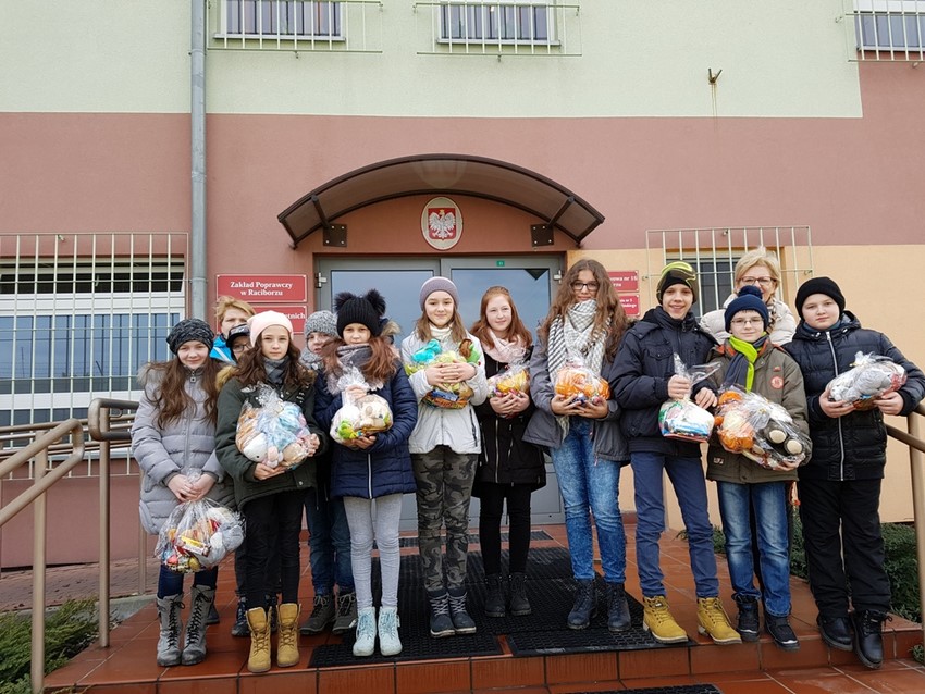 25 stycznia uczniowie klasy V i VI odwiedzili Zakład Poprawczy i Schronisko dla Nieletnich w Raciborzu. Wizyta w raciborskim zakładzie była podziękowaniem organizatorów charytatywnej akcji „My pomagamy – pomagajcie i wy” za przeprowadzenie w naszej szkole w listopadzie ubiegłego roku zbiórki maskotek, które za pośrednictwem wychowanków Zakładu Poprawczego trafiły do dzieci z domów dziecka oraz świetlic środowiskowych z okazji dnia św. Mikołaja. Prezenty otrzymały dzieci z Wodzisławia, Kuźni Raciborskiej, Nędzy, Krzanowic, Samborowic oraz Raciborza.