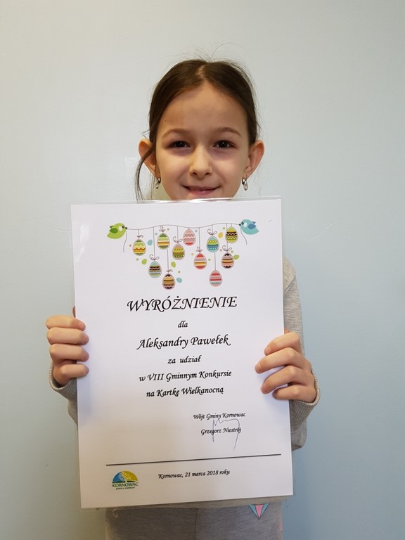 21 marca podczas Gminnego Kiermaszu Potraw i Ozdób Wielkanocnych zorganizowanego w Domu Kultury w Kobyli rozstrzygnęło VIII Konkurs na „Kartkę Wielkanocną”. Organizatorem konkursu był Wójt Gminy Kornowac oraz Gminna Biblioteka Publiczna w Kornowacu. Na konkurs wpłynęły 194 prace, z których wyróżniono także kartki wielkanocne naszych uczniów.