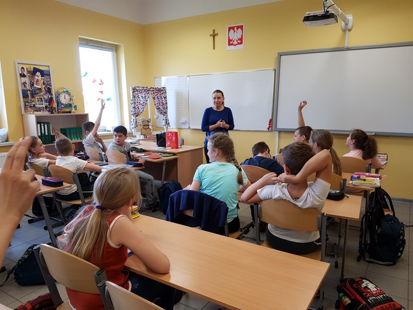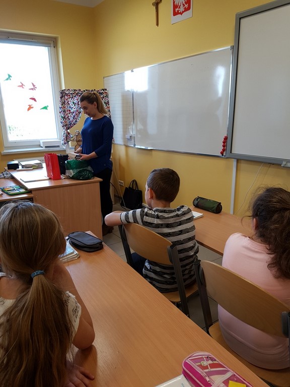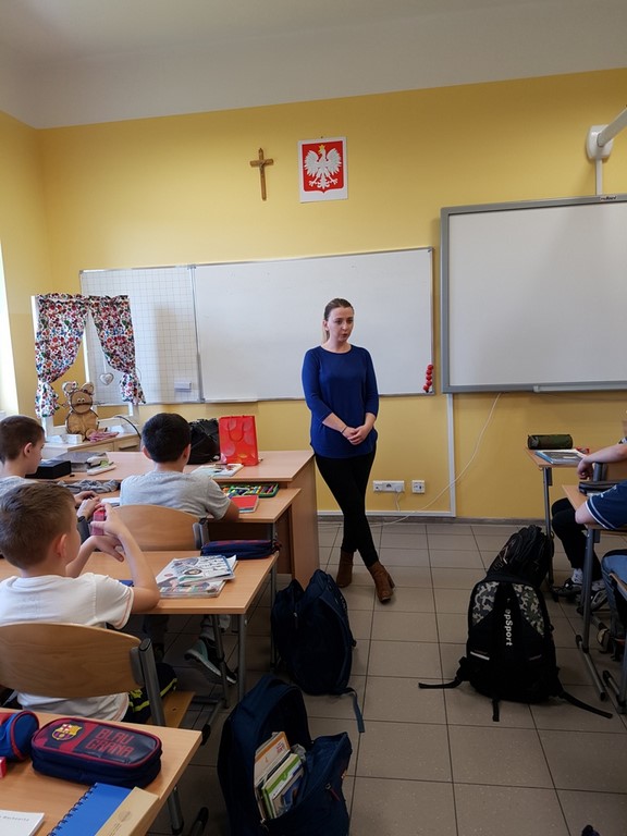 10 kwietnia odwiedził naszą szkołę specjalny gość – p. Anita Pendziałek, dziennikarka z polsko-niemieckiej redakcji Mittendrin. Klasa IV miała okazję posłuchać ciekawostek na temat pracy dziennikarskiej. Pani Anita opowiedziała uczniom o swojej przygodzie z językiem niemieckim, a także o specyfice pracy dziennikarza radiowego. Klubowicze otrzymali od p. Anity także ciekawe gadżety reklamowe – notes, długopis i ołówek z logiem radia!