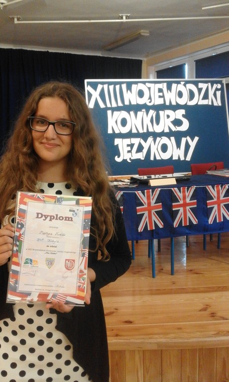 18 maja w szkole Podstawowej nr 18 w raciborzu odbył się XIII Wojewódzki Konkurs Z Języka Angielskiego. Pośród 25 uczestników z całego województwa śląskiego, wyłonionych w ramach eliminacji szkolnych, znalazła się nasza uczennica Martyna Nowak. Martyna musiała zmierzyć się z testem, który sprawdzał umiejetność słuchania, czytania ze zrozumieniem, gramatykę, słownictwo i znajomość kulttury i historii krajów anglojęzycznych. I choć ostatecznie Martynie nie udało się stanąć na podium, sam udział jest już wielkim sukcesem, z czego ogromnie się cieszymy i serdecznie gratulujemy.