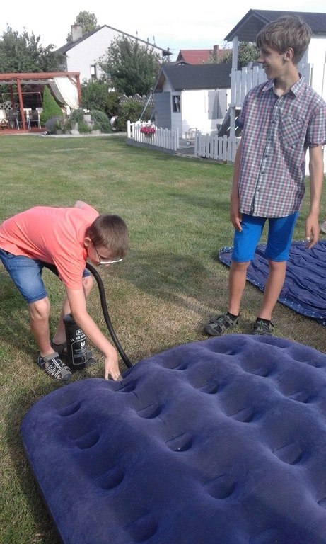 W piątek 8 czerwca 2018 r. szóstoklasiści spędzali noc pod namiotami. Korzystaliśmy z uprzejmości państwa Błaszczok i to na ich podwórku rozłożyliśmy namioty, a że nie jest to takie łatwe jak by się mog ło wydawać – pomagali nam rodzice. Na początek wspólnej imprezy był tort z okazji urodzin Kingi, potem słodkości, gry i zabawy. Wieczorem przygotowaliśmy posłania w namiotach, a o północy czekała nas niespodzianka – ognisko z pieczeniem kiełbasek. Poszliśmy spać późno, a wstaliśmy wcześnie (byli i tacy co nie spali wcale), ale zabawa była wyśmienita. Rano uśmiechnięci, zadowoleni i co tu dużo kryć – zmęczeni i śpiący – wróciliśmy do domu.