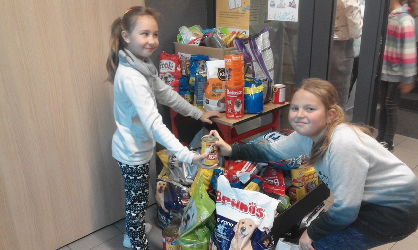 W ubiegłym tygodniu, z inicjatywy Rady Rodziców, zorganizowaliśmy w szkole zbiórkę karmy dla podopiecznych schrniska dla zwierząt w Raciborzu. Jak zwykle serca uczniów nie zawiodły i choć zbiórka trwała bardzo krótko, bo tylko cztery dni, zebraliśmy trzy duże pudła karmy, które pomogą zwierzętom przetrwać zimę.