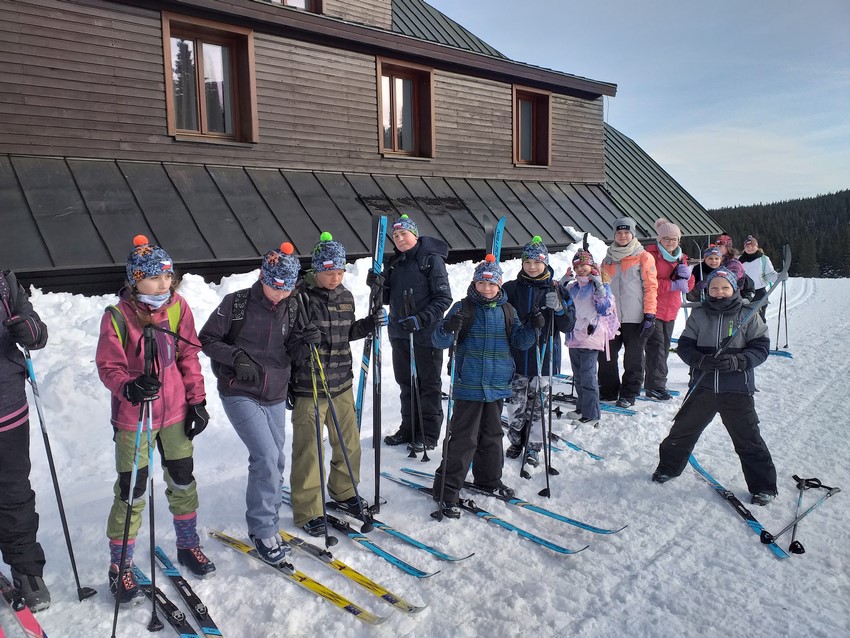 W dniach 25-26 luty szesnaścioro uczni ów klasy IV waz z opiekunkami, panią Kasią i panią Heleną, uczestniczyło w V działaniu projektu współpracy transgranicznej "Czesko-Polskie spotkania z natura i historią". Podczas działania, wspólnie z uczniami z zaprzyjaźnionej szkoły z Komarova, uczyliśmy się jeździć na nartach biegowych, a nawet braliśmy udział w mini rozgrywkach polsko-czeskich. Niektórzy z nas mieli styczność z nartami po raz pierwszy, więc było wesoło. Wieczorem bawiliśmy się w Aqua Parku, a drugiego dnia zwiedziliśmy Wytwórię Papieru oraz muzeum ręcznie rzeźbionych figur z drewna. A wszystko to działo się w otoczeniu pięknego krajobrazu Jeseników z Pradziadem w roli głównej. To były radosne i pouczające dwa dni, dzięki którym nabyliśmy nowe umiejętności, poznaliśmy kawałek historii, podziwialiśmy talenty a przede wszystkim zacieśniliśmy nasze polsko-czeskie przyjaźnie zawarte podczas poprzednich działań.