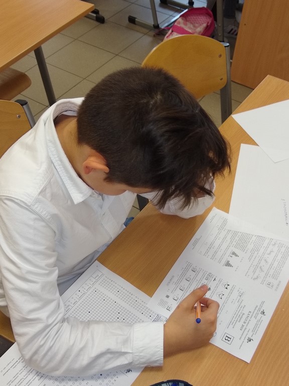 Międzynarodowy Konkurs Matematyczny "Kangur" odbył się w tym roku pierwszego dnia Wiosny - 21 marca. Wyzwanie, jakim jest rozwiązywanie trudnych i nietypowych zadań, podjęło 16 uczniów naszej szkoły. Byli to wybrani uczniowie klas II do VI. Miłośnicy Kròlowej Nauk musieli zmierzyć się z zadaniami o różnym stopniu trudności, wykazać się bardzo dobrą wiedzą matematyczną oraz umiejętnością logicznego myślenia. Po zakończonym konkursie każdy z uczestników otrzymał pamiątkową zabawkę logiczną w postaci kolorowej piłeczki. Z niecierpliwością czekamy na wyniki konkursu.