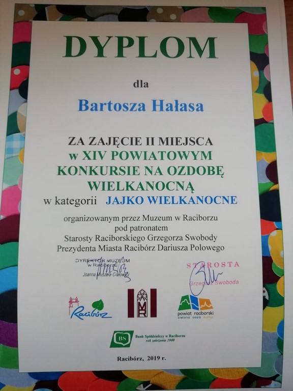 - w kategorii jajko wielkanocne: II NAGROGA BARTOSZ HAŁAS z kl. VI