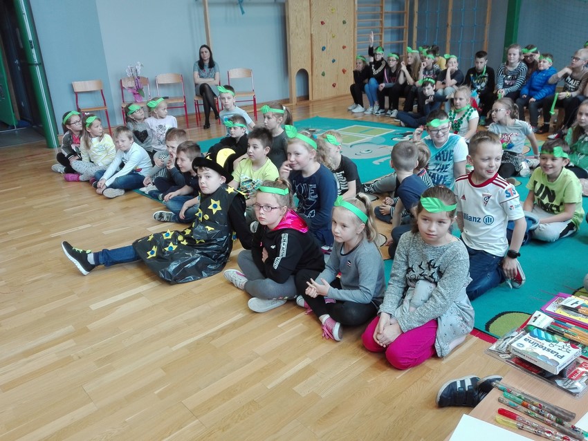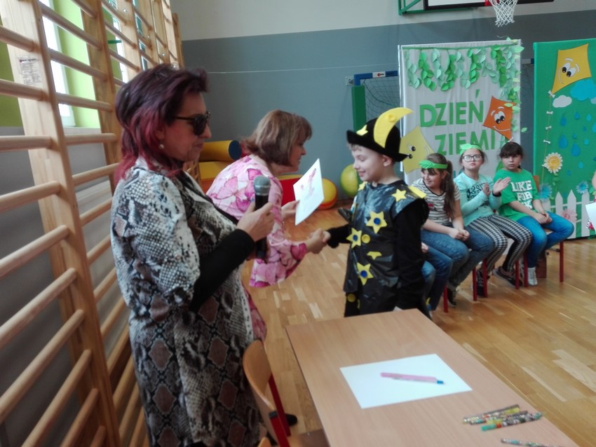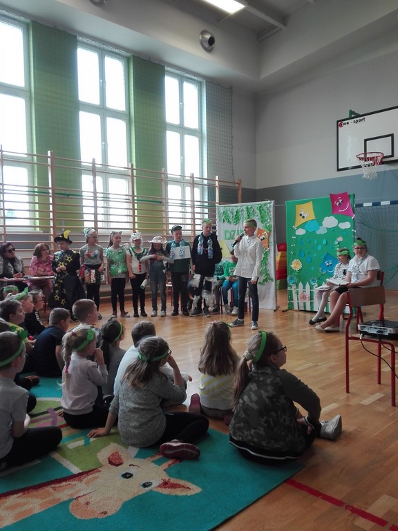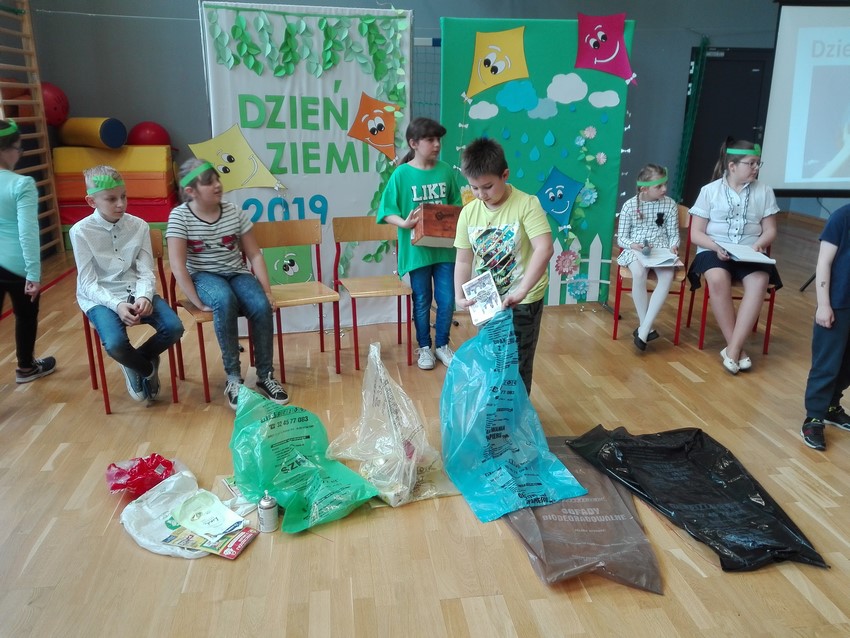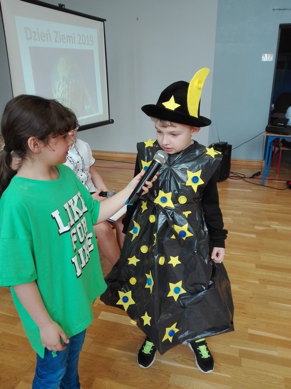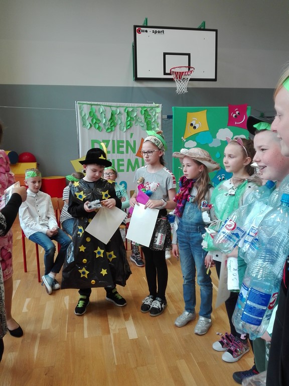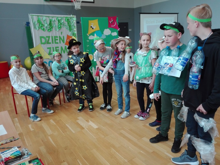 22 kwietnia jest dniem, kiedy w każdej szkole obchodzi się Dzień Ziemi. Uczniowie klasy czwartej przygotowali krótkie przypomnienie jak segregować śmieci. Nadia i Szymon zaśpiewali dla nas piosenki o ekologii, a siedmioro uczniów przebrało się w ekologiczne stroje. Zanim komisja oceniła wykonane stroje, uczniowie musieli odpowiedzieć na pytania związane z ekologią. Wśród tych uczniów pierwsze miejsce zdobył Kacper Staniczek, drugie - Wiktoria Wesper, a miejsce trzecie zdobyła Marta Granieczny. Na koniec obejrzeliśmy filmik "Nakręć się na klimat", który przygotowali uczniowie klasy VI w ramach konkursu. Pamiętajmy, by chronić nasze najbliższe środowisko.