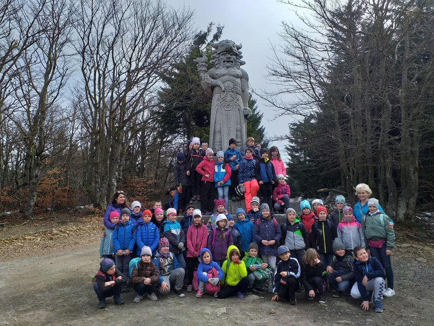 17 kwietnia, w ramach VI działania projektu "Czesko-Polskie spotkania z naturą i historią", grupa uczniów klas II i III, pojechala na spotkanie z uczniami partnerskiej szkoły z Komarova, by wspólnie udać się na wycieczkę w Beskidy. Celem wyjazdu było zdobycie góry Radhošť, z którąwiąże się wiele legend. Według jednej z nich, góra jest siedzibą Radogosta, pogańskiego boga wojny, zwycięstwa, słońca i obfitości. Uczestnicy działania mieli okazję zobaczyć wielki pomnik Radogosta, stojący tuż pod szczytem, na wysokości ponad 1100 metrów n.p.m. Pół ludzka, pół zwierzęca postać boga wzbudziła zachwyt i ciekawość dzieci. Następnie wszyscy udali się do skansenu w Welkich Losinach, gdzie w okresie Wielkanocy prezentowane są tradycje i zwyczaje, które panowały na terenie Republiki Czeskiej kilkadziesiąt lat temu, a co ciekawe, część z nich, w Polsce przetrwało do dziś. Uczestnicy spotkania zobaczyli między innymi topienie Marzanny, skosztowali tradycyjnych wielkanocnych potraw, obejrzeliy wystrój domów, tradycyjne stroje, wysluchali śpiewów i wierszy, a na koniec mieliy okazję malować jajka i robić bicze do śmigania w Smigus-dyngus. Wspólny wyjazd sprzyjał też zaciesnianiu przyjaźni zawartych podczas poprzednich spotkań.