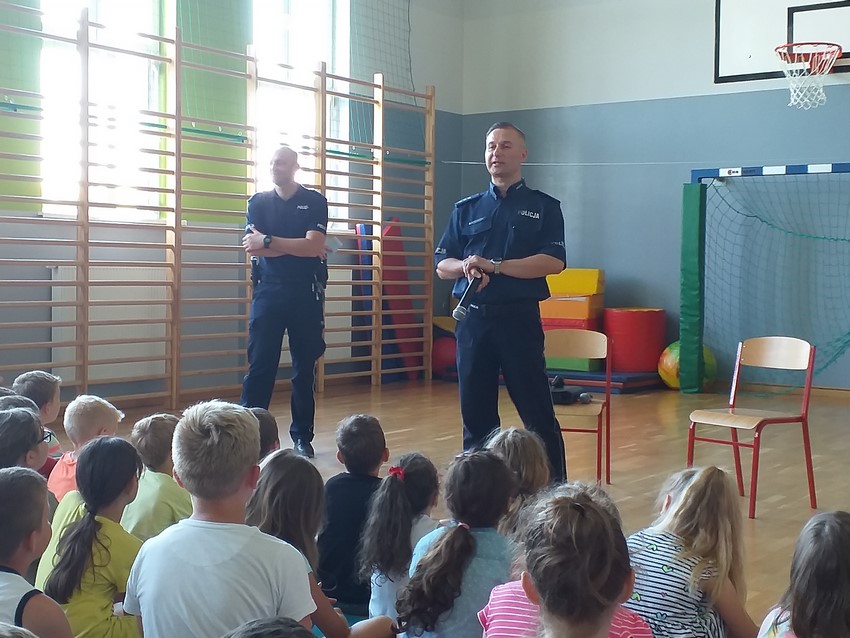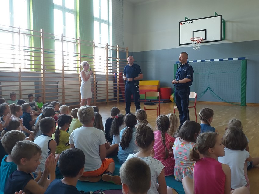 Rozpoczęliśmy Ogólnoolską akcję "Bezpieczne wakacje 2019". W ramach akcji odbyło się spotkanie z przedstawicielami Komendy Powiatowej Policji w Raciborzu, którzy przeprowadzili pogadankę na temat bezpieczeństwa podczas letniego wypoczynku. Dodtkowo uczniowie klas III i V przygotowali informacyjny plakat dotyczący bezpiecznego zachowania podczas wakacji. Plakat został umieszczony na drzwiach głównych budynku szkoły, tak by każdy mógł skorzystać z rad, których udzielają koledzy i koleżanki. Dla poprawy bezpieczeństwa wszyscy uczniowie szkoły otrzymali równiez kamizelki odblaskowe, które szkoła pozyskała dzięki uczestnictwu w ogólnopolskiej akcji "Dobrze Cię widzieć".