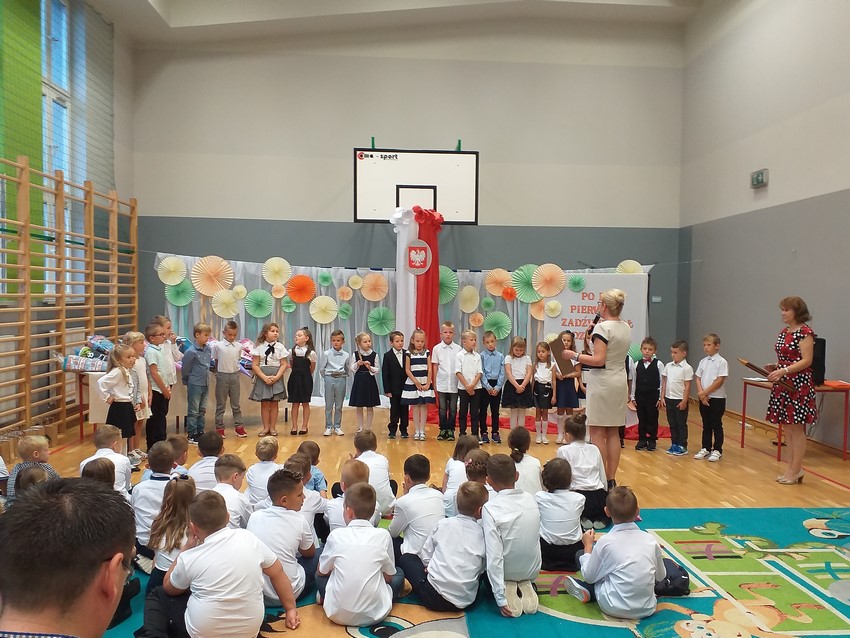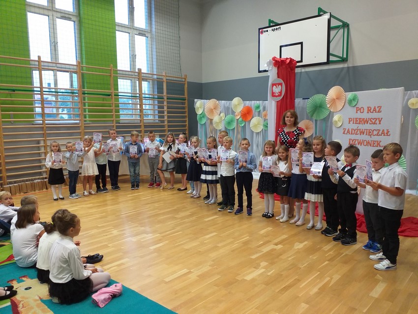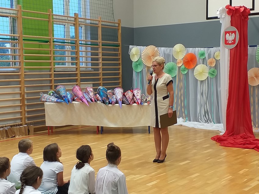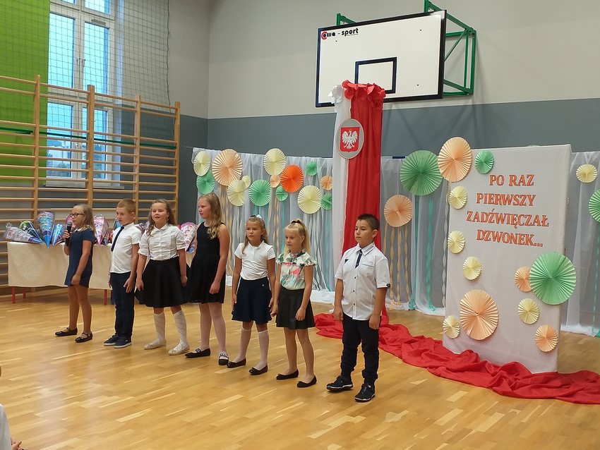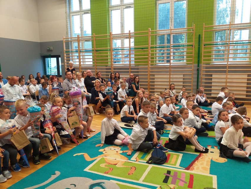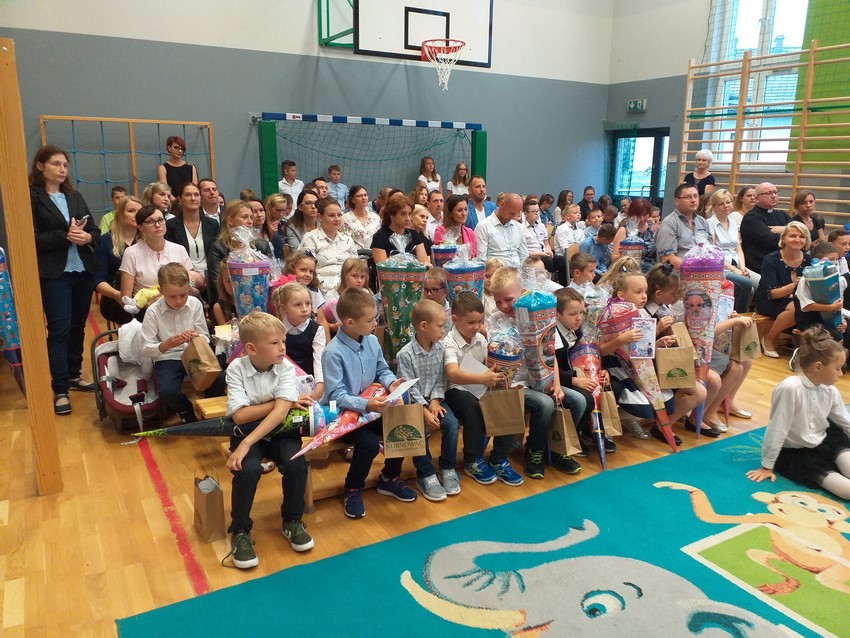 2 września rozpoczęliśmy rok szkolny 2019/2020. W tym uroczystym dniu spotkaliśmy się wszyscy na sali gimnastycznej na akademii inaugurującej nowy rok szkolny. Pani Dyrektor powitała wszystkich uczniów, a zwłaszcza dwadziescia czworo pierwszoklasistów, którzy po raz pierwszy przekroczyli mury naszej szkoły i od razu, w towarzystwie swoich starszych kolegów i koleżanek oraz rodziców, złożyli uroczyste ślubowanie. Na otarcie łez i dobry początek, pierwszacy otrzymali słodkie rogi obfitości i upominki od drugoklasistów. Po wspólnym powitaniu, wszyscy udali się na spotkanie z wychowawcami klas.