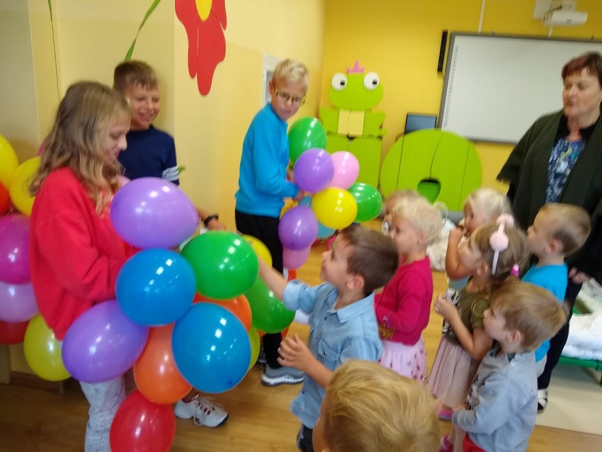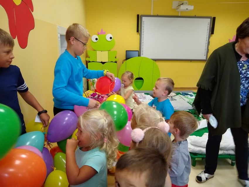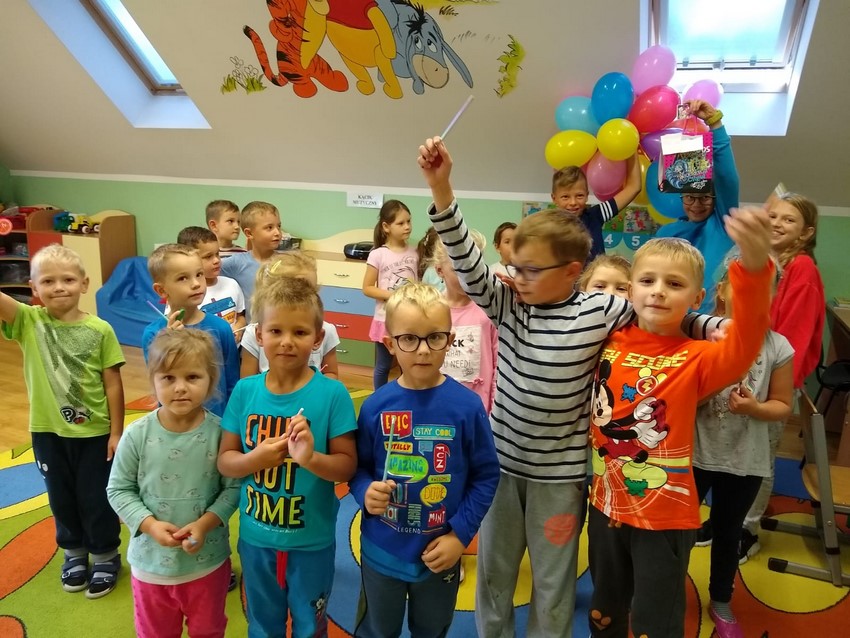 20 września, z okazji Dnia Przedszkolaka, postanowiliśmy odwiedzić naszych młodszych kolegów i koleżanki zza ściany, by złożyc im serdeczne życzenia oraz wręczyć drobne upominki. Mamy nadzieję, że sprawiliśmy maluszkom wiele radości i że chętnie i ochoczo będą przychodzić do przedszkola przez cały rok!