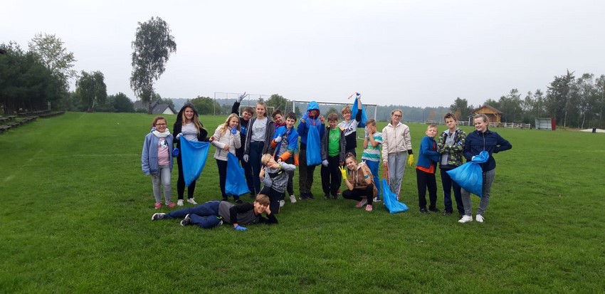 Uczniowie wszystkich klas chętnie ruszyli w teren aby oczyścić nasz mały kawałek Ziemi. Do szkoły wracali z uśmiechem i pełnymi workami, gdzie czekał na nich słodki upominek ufundowany przez gminę.