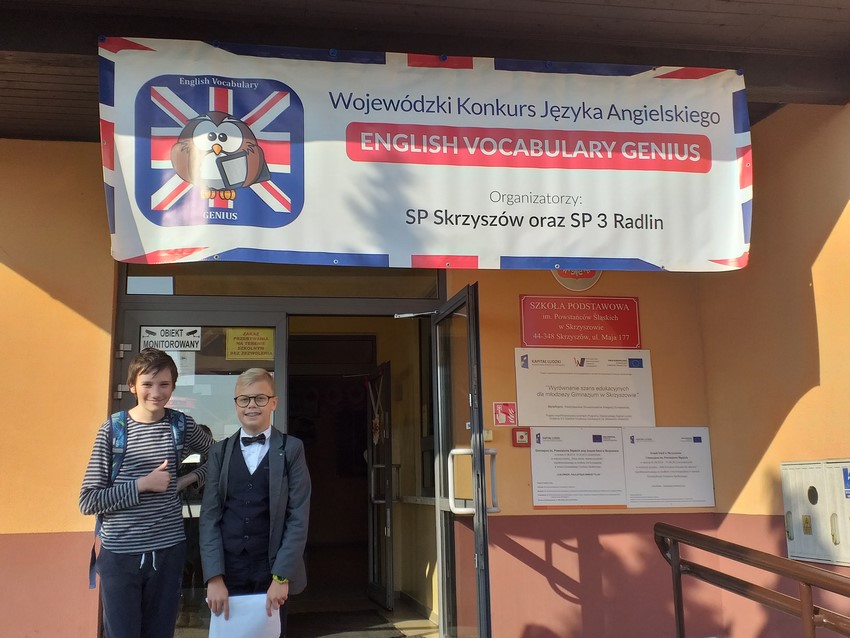25 listopada, Szymon Rybiński i Fabian Dąbrowski w klasy VI, wzieli udział w Wojewódzkim kOnkursie z Języka Angielskiego "The English Genius". Zadaniem chłopców było napisanie w ciągu czterdziestu minut, dwustu słówek losowo wybranych spośród czterystu zwrotów, wyrażeń i słów, jakie otrzymali na początku października do nauki. Chłopcy poświęcili dużo czasu na przygotowanie do konkursu, bo na liście do nauki nie było typowych i łatwych słówek. Na efekty - wyniki konkursu, trzeba jeszcze poczekać, ale już teraz gratulujemy chłopakom, którzy podjęli wyzwanie i wzięli udział w konkursie.