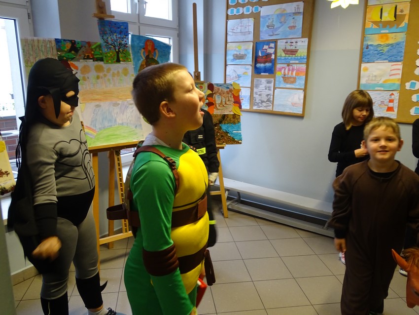 5 listopada w naszej szkole obchodzilismy Dzień Postaci Bajkowych. W klasach i na korytarzach można było spotkać księżniczki i rogate stwory, pięknych piżamowiczów, muszkieterów i kowbojów były lwy, konie, różowe świnki, Pippi, elfy, Czerwone Kapturki i motyle, czarownice, smoki, BatMany, SpiderMany i piraci pojawił się nawet Pat i Mat, król,piłkarze oraz żołnierz...